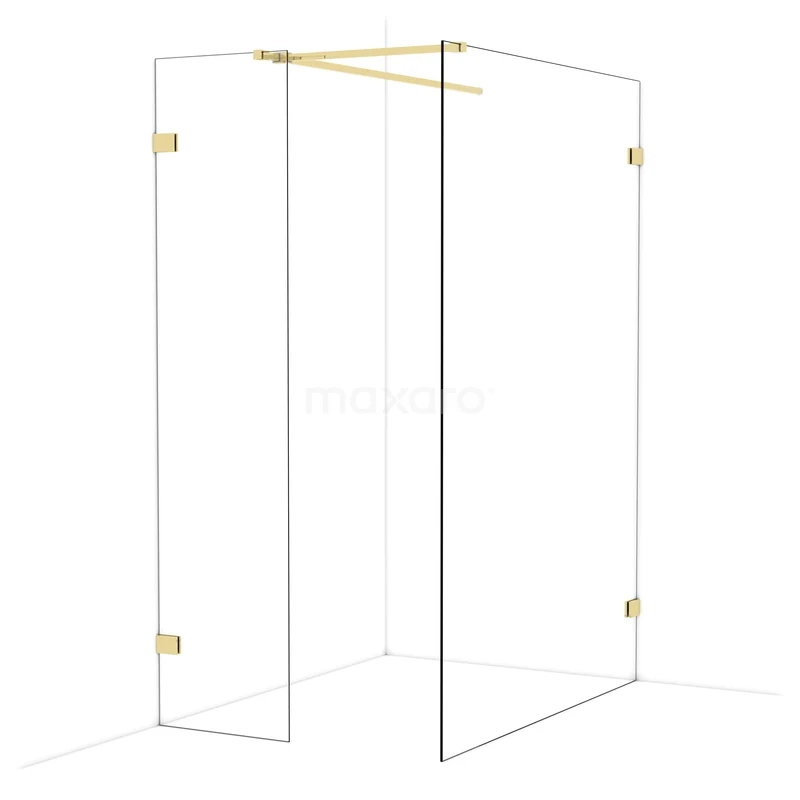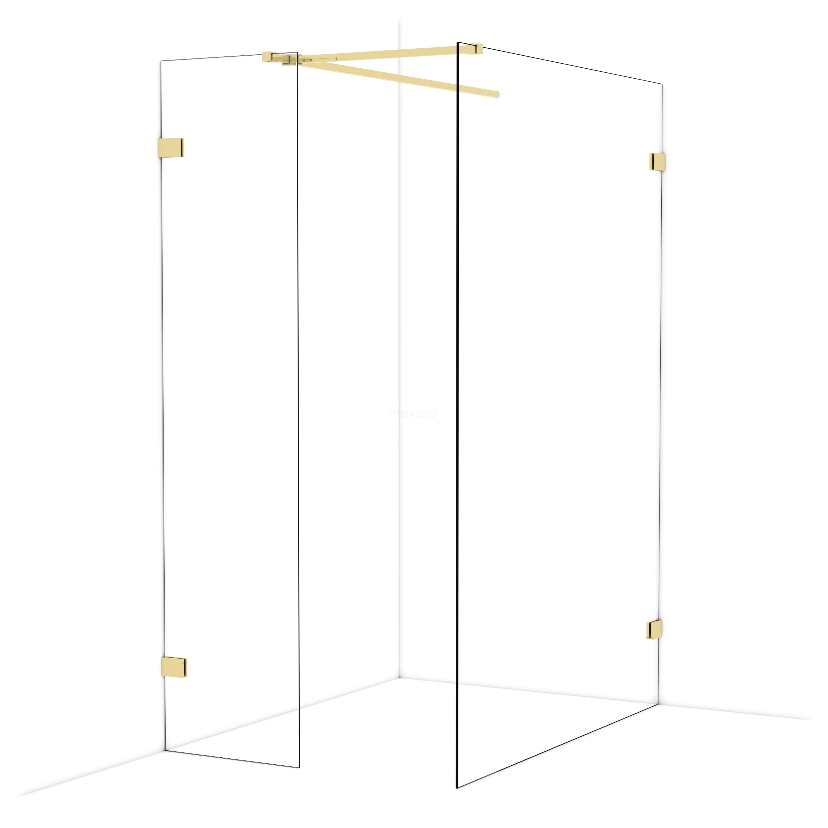 Diamond Inloopdouche | 140x50 cm Glanzend lichtgoud Helder glas 2 vaste wanden