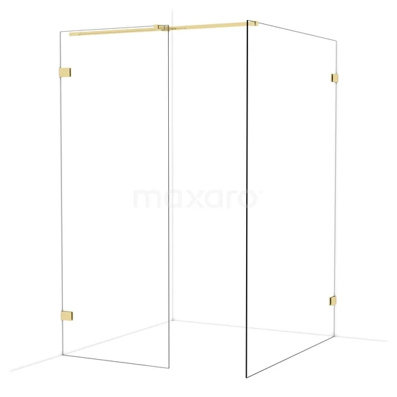 Diamond Inloopdouche | 140x80 cm Glanzend lichtgoud Helder glas 2 vaste wanden