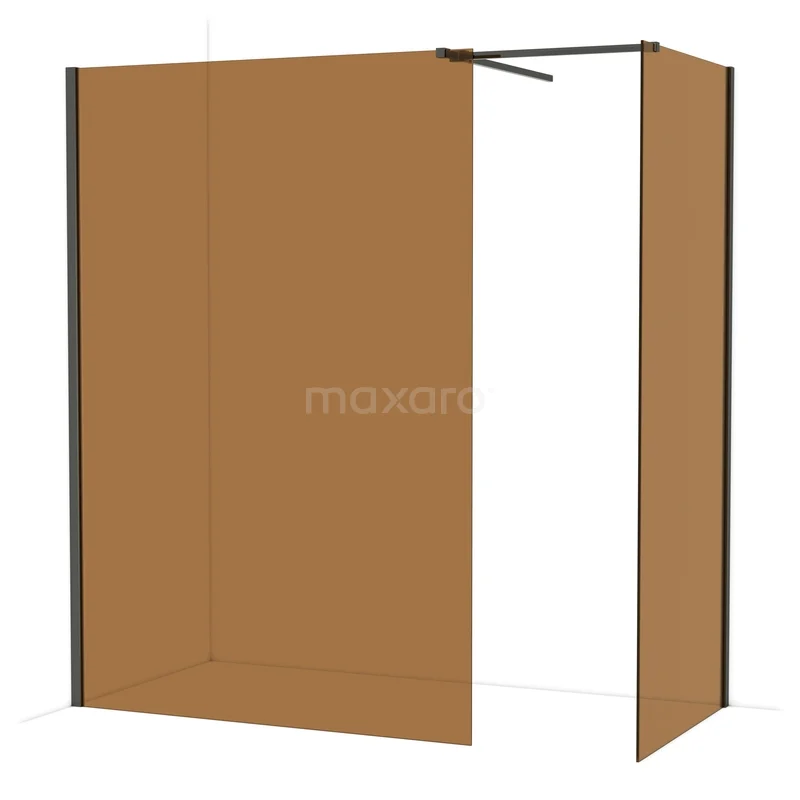 Diamond Inloopdouche | 140x90 cm Zwart chroom Bronsglas 2 vaste wanden