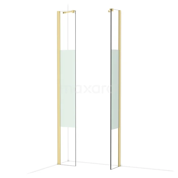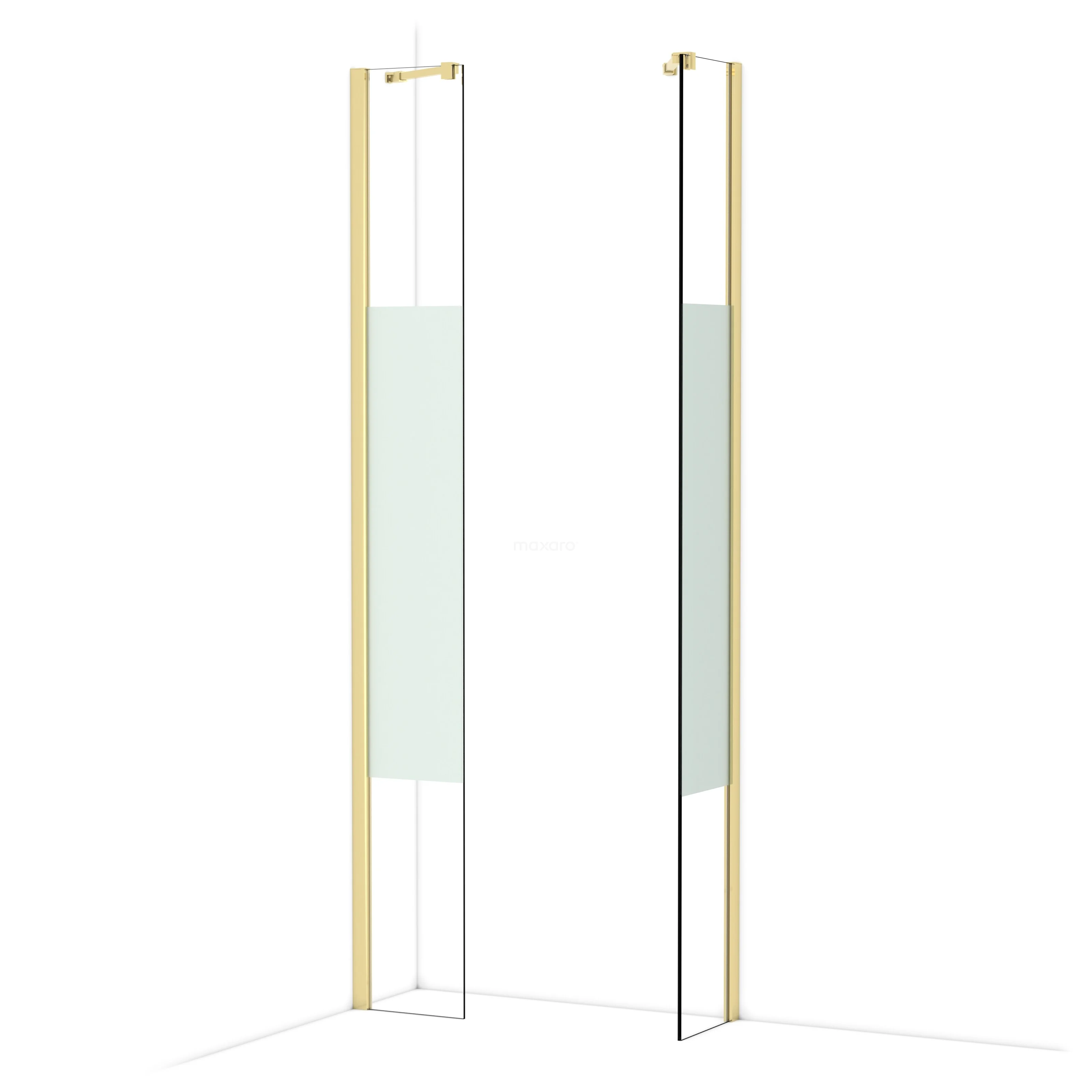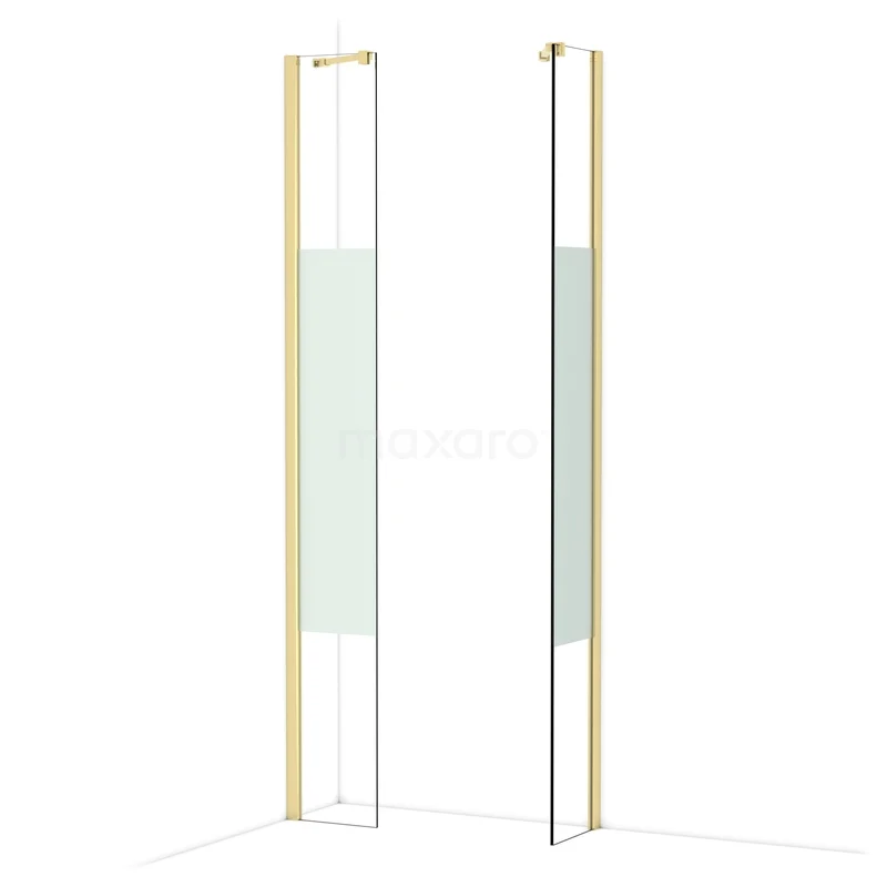 Diamond Inloopdouche | 30x30 cm Glanzend lichtgoud Helder met matte strook 2 vaste wanden