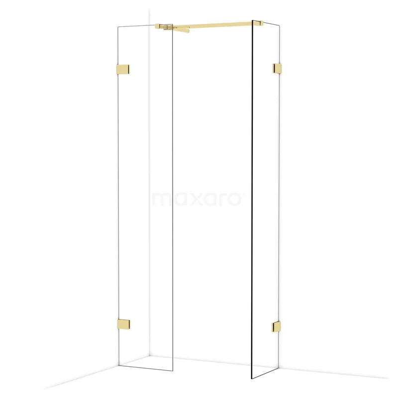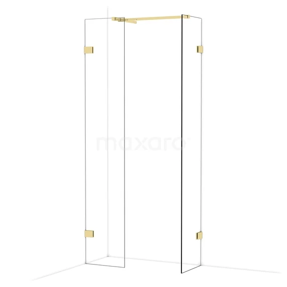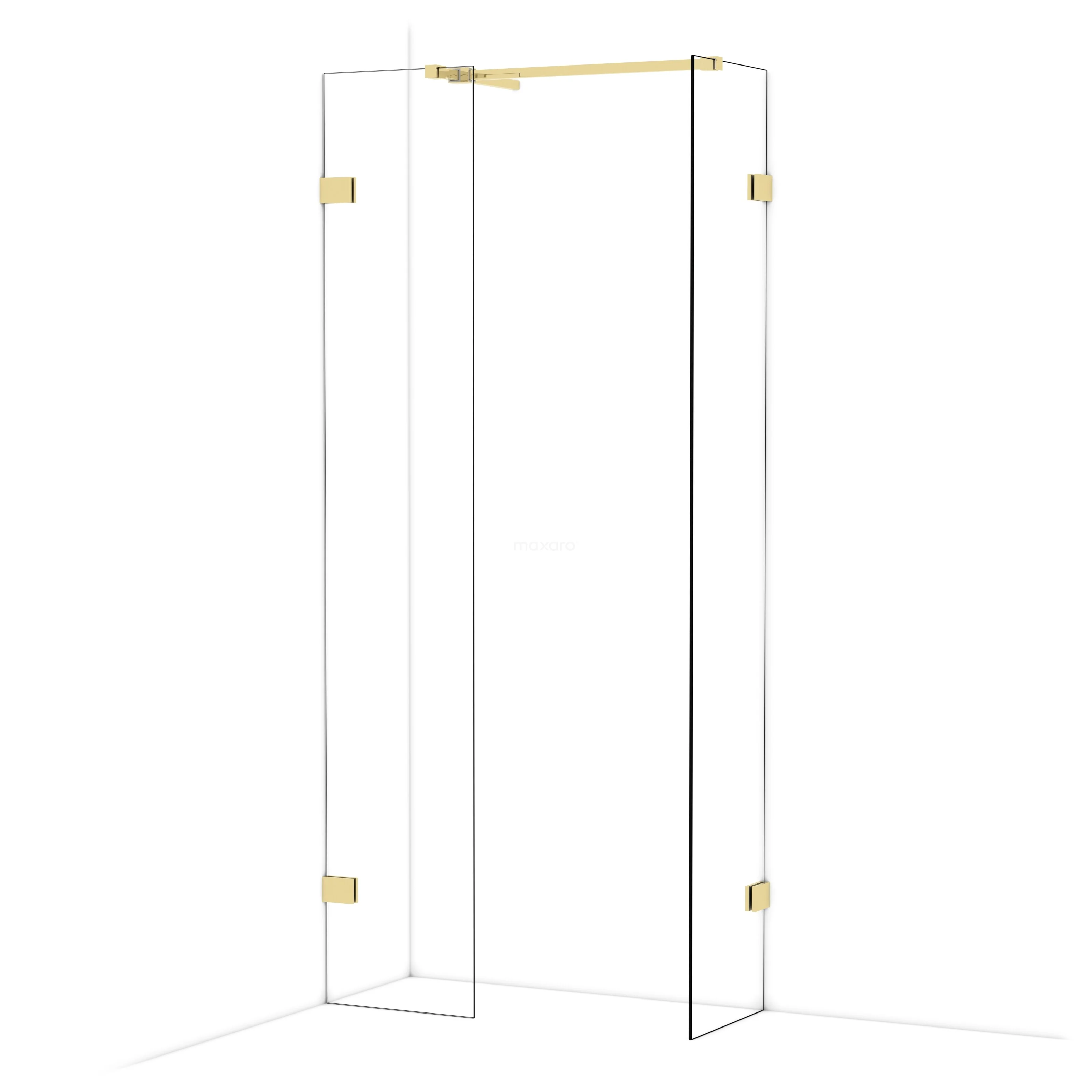 Diamond Inloopdouche | 40x40 cm Glanzend lichtgoud Helder glas 2 vaste wanden