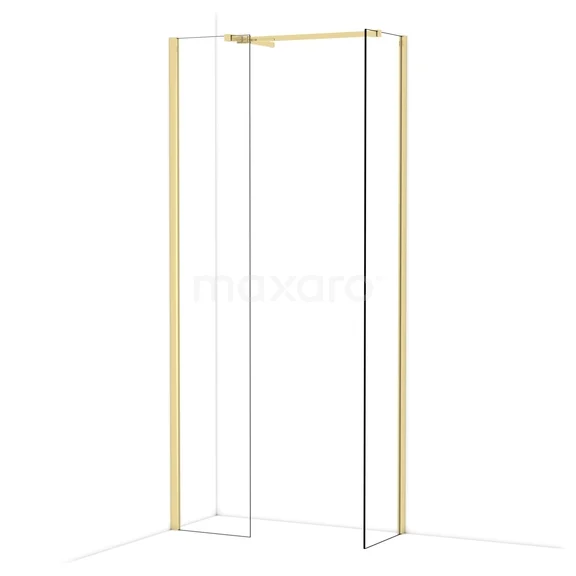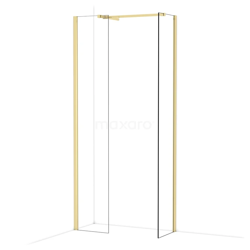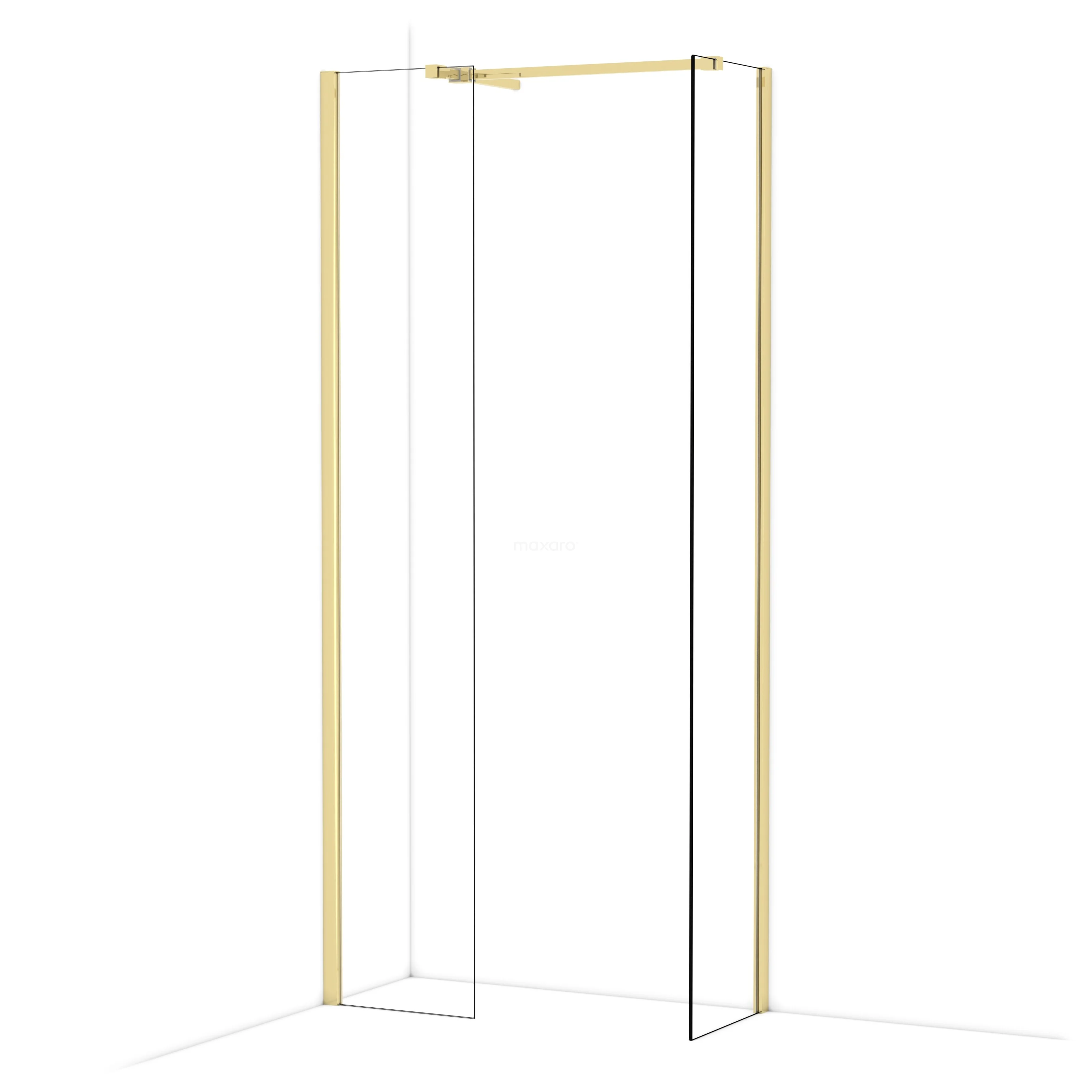 Diamond Inloopdouche | 40x40 cm Glanzend lichtgoud Helder glas 2 vaste wanden