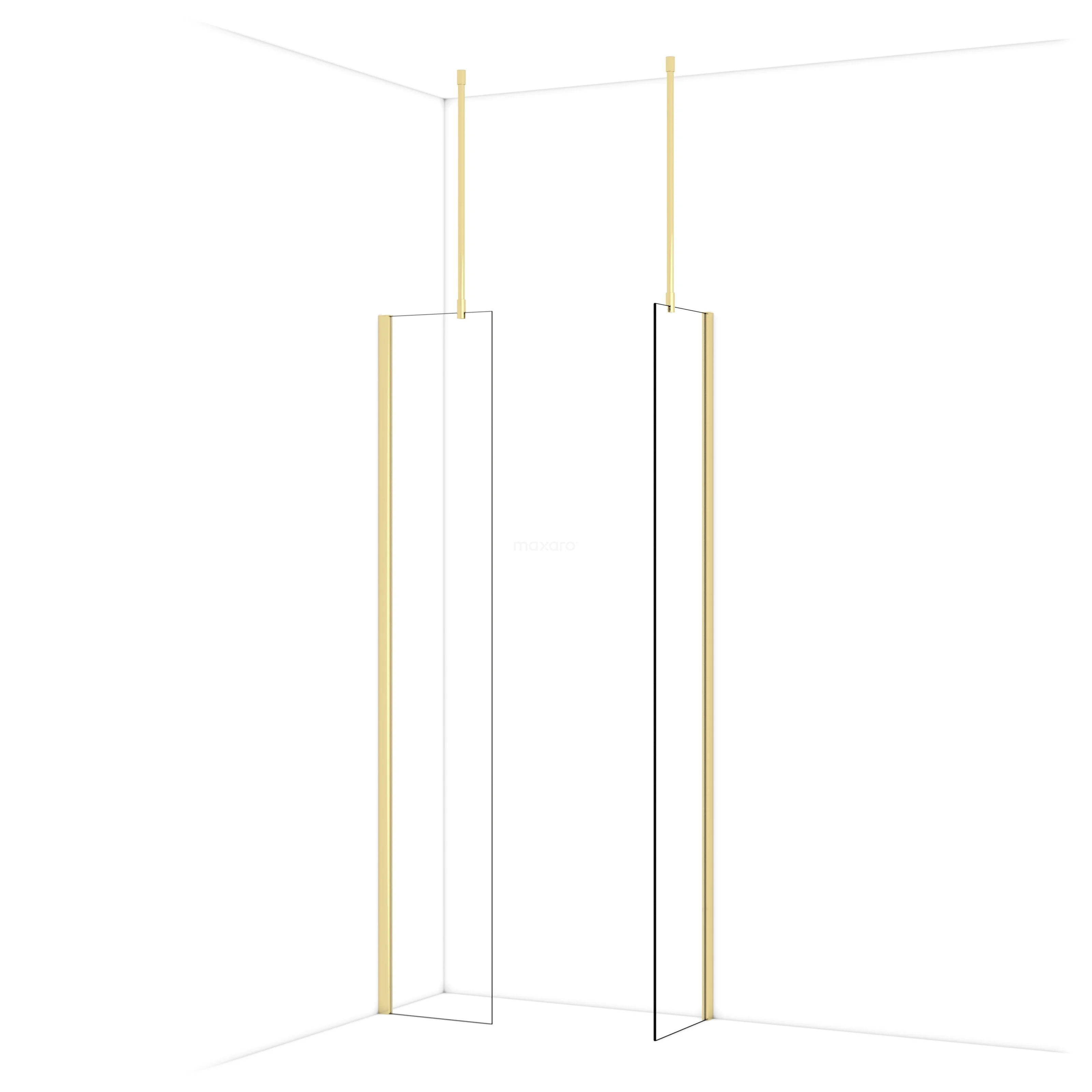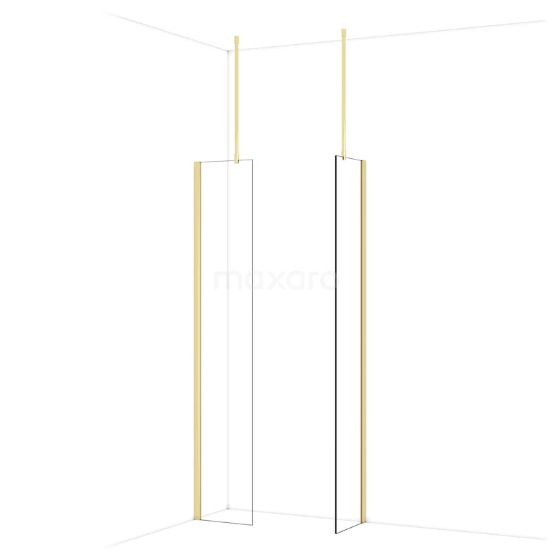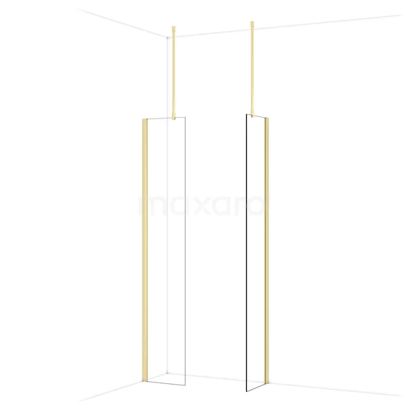 Diamond Inloopdouche | 40x40 cm Glanzend lichtgoud Helder glas 2 vaste wanden