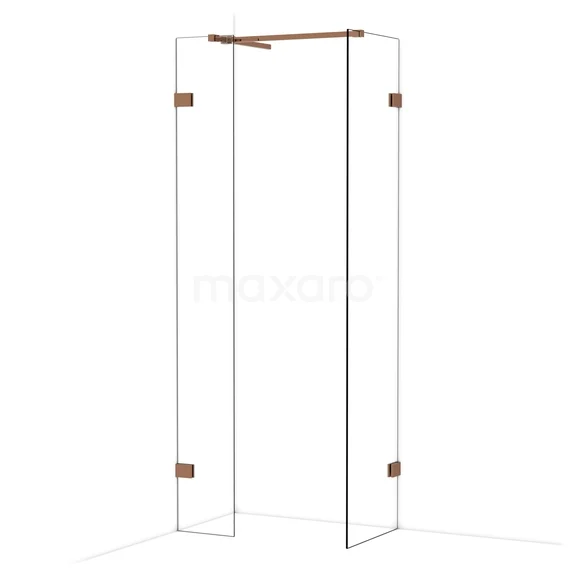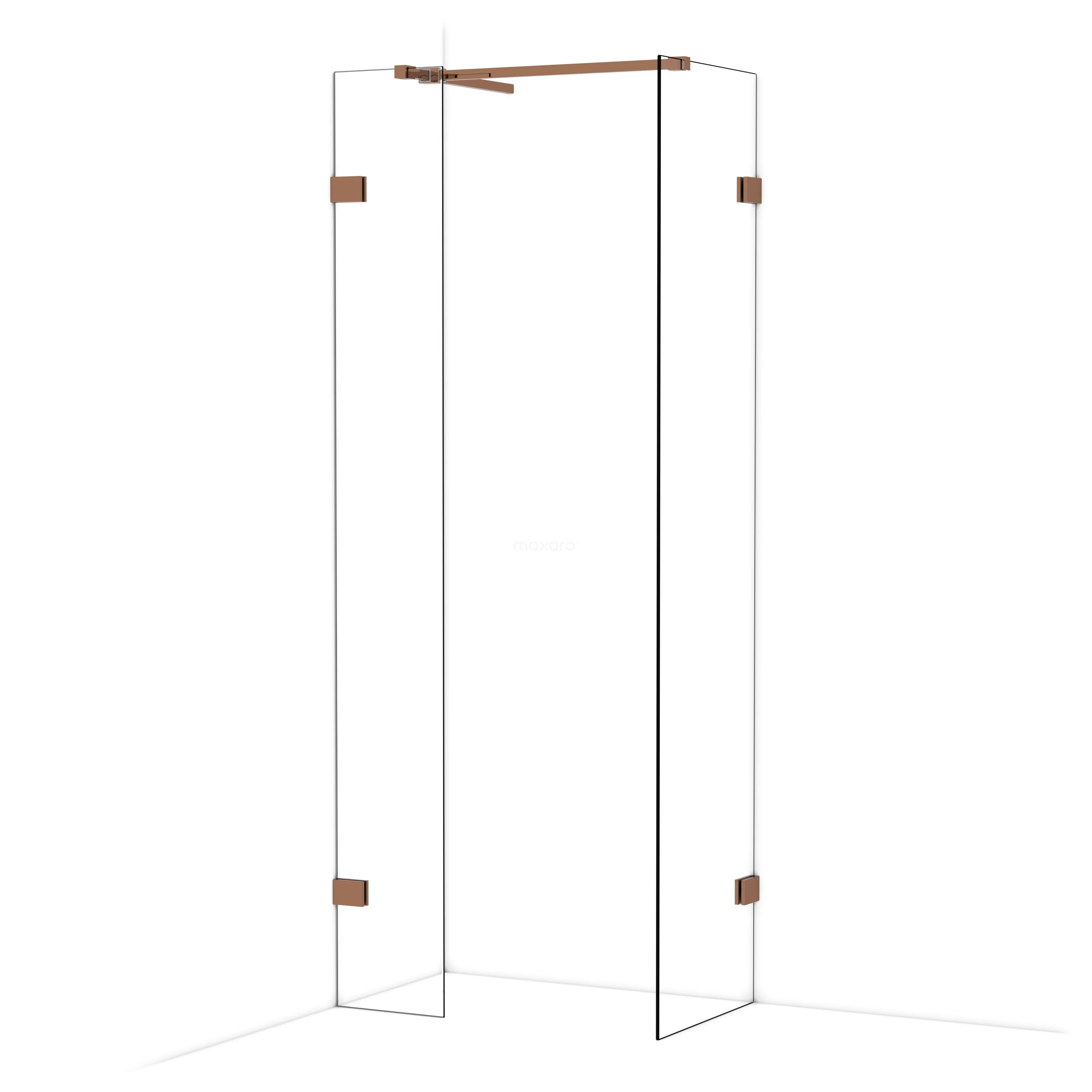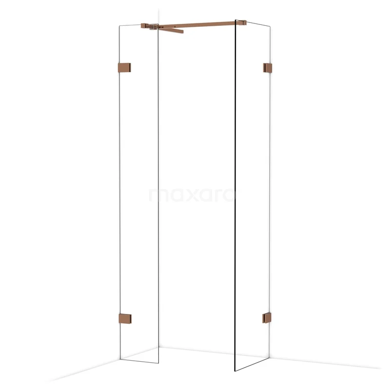 Diamond Inloopdouche | 50x30 cm Glanzend koper Helder glas 2 vaste wanden