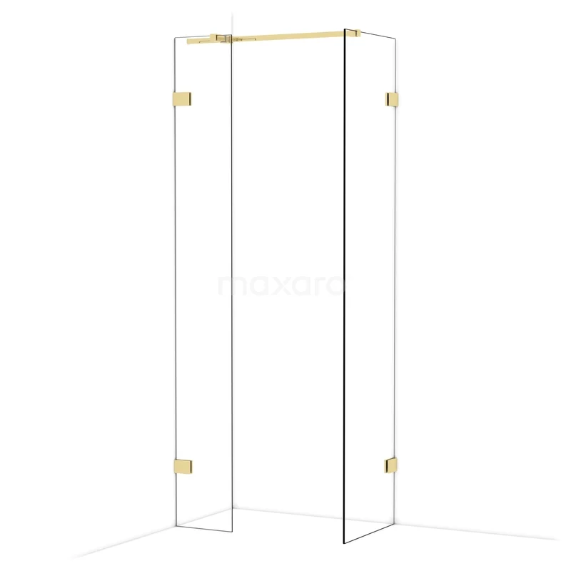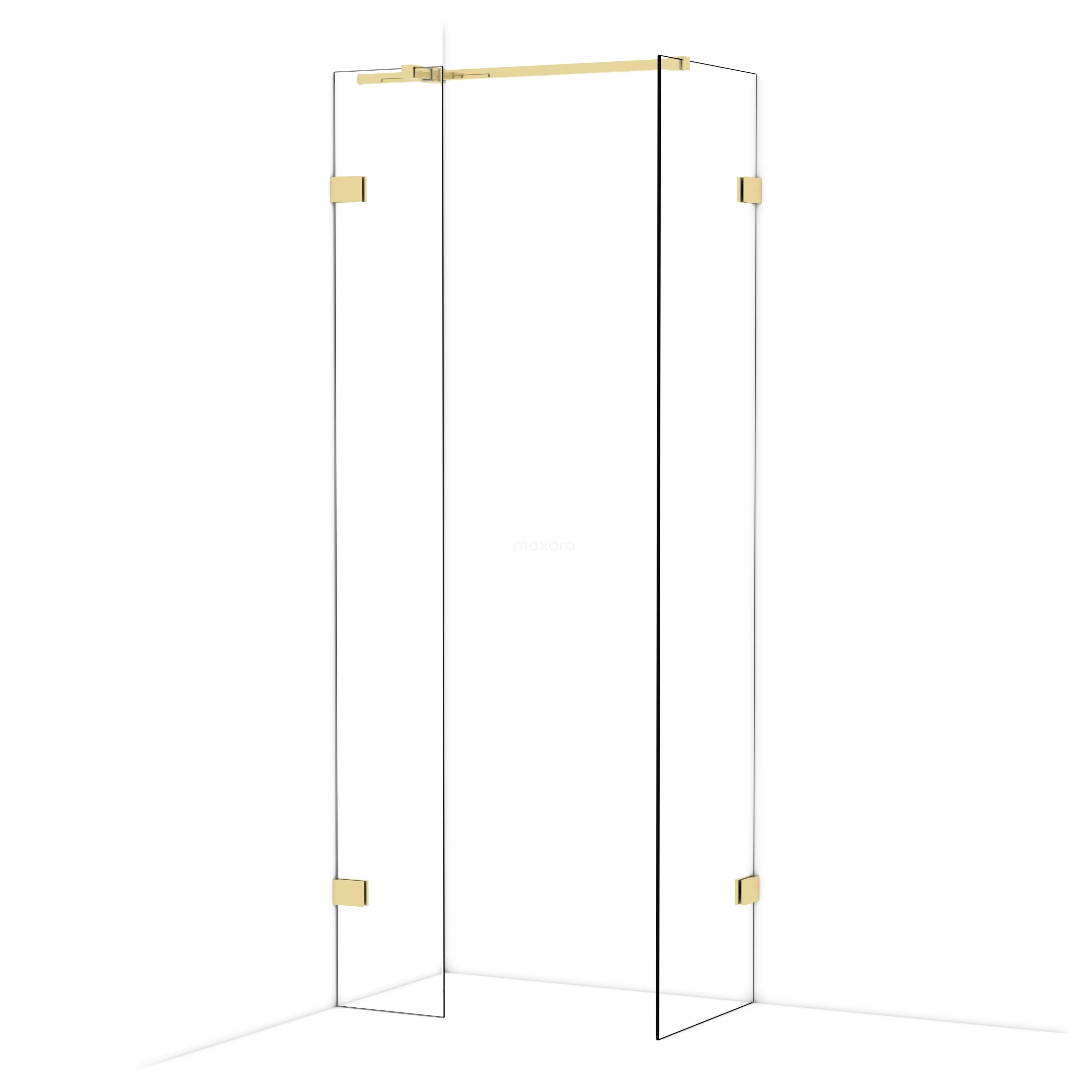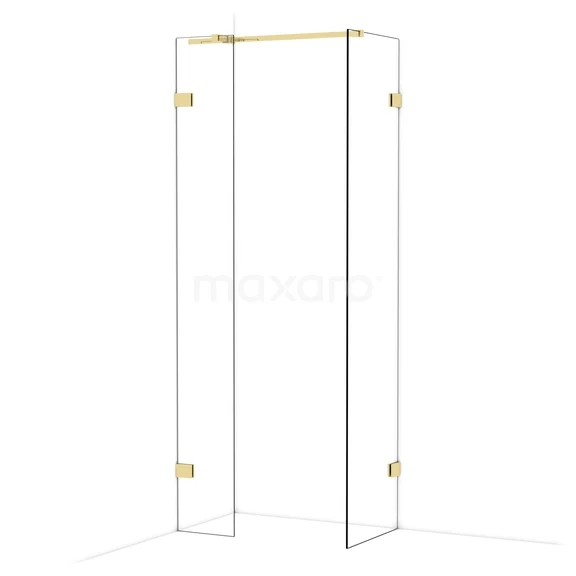 Diamond Inloopdouche | 50x30 cm Glanzend lichtgoud Helder glas 2 vaste wanden