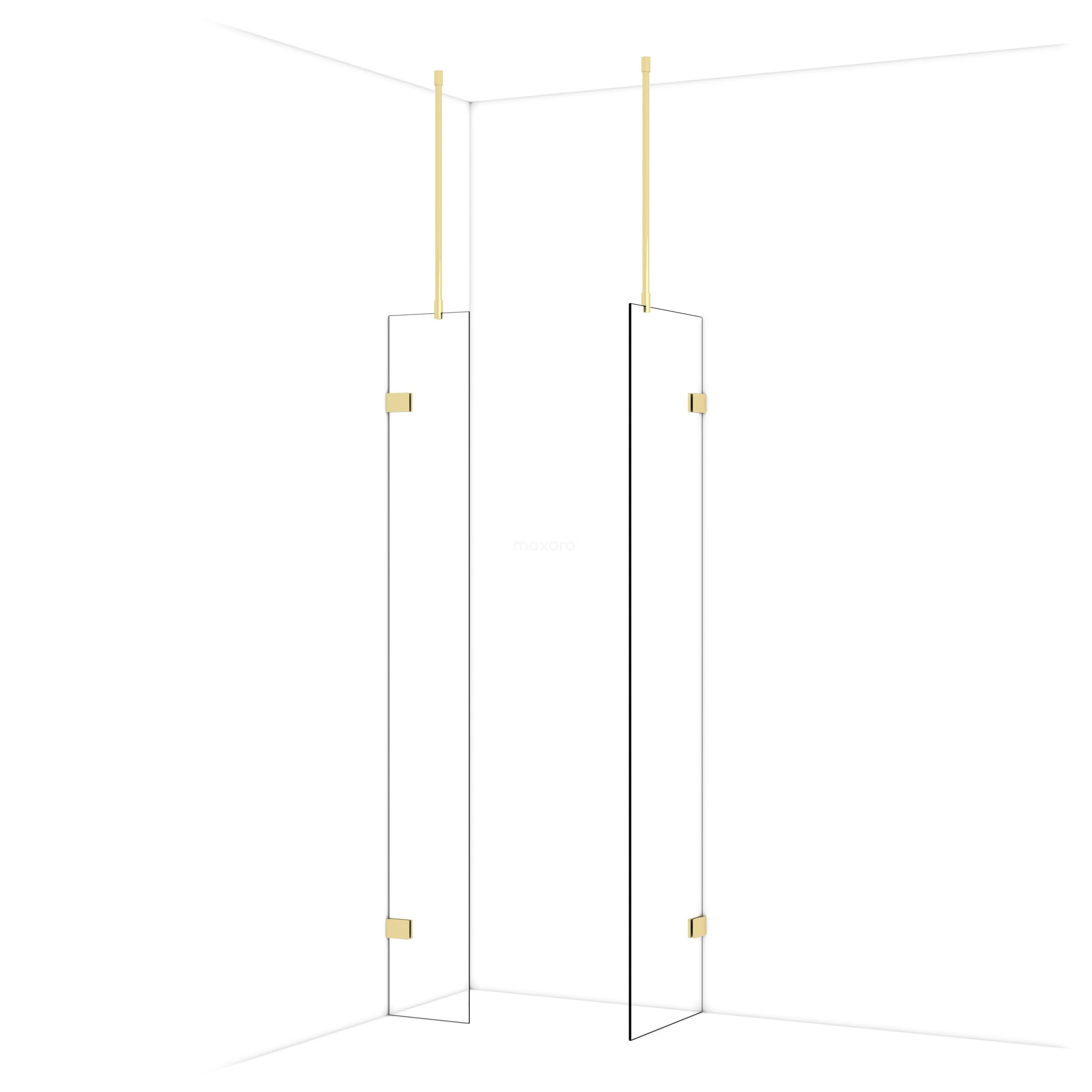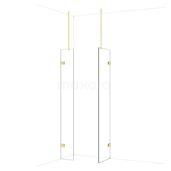 Diamond Inloopdouche | 50x30 cm Glanzend lichtgoud Helder glas 2 vaste wanden