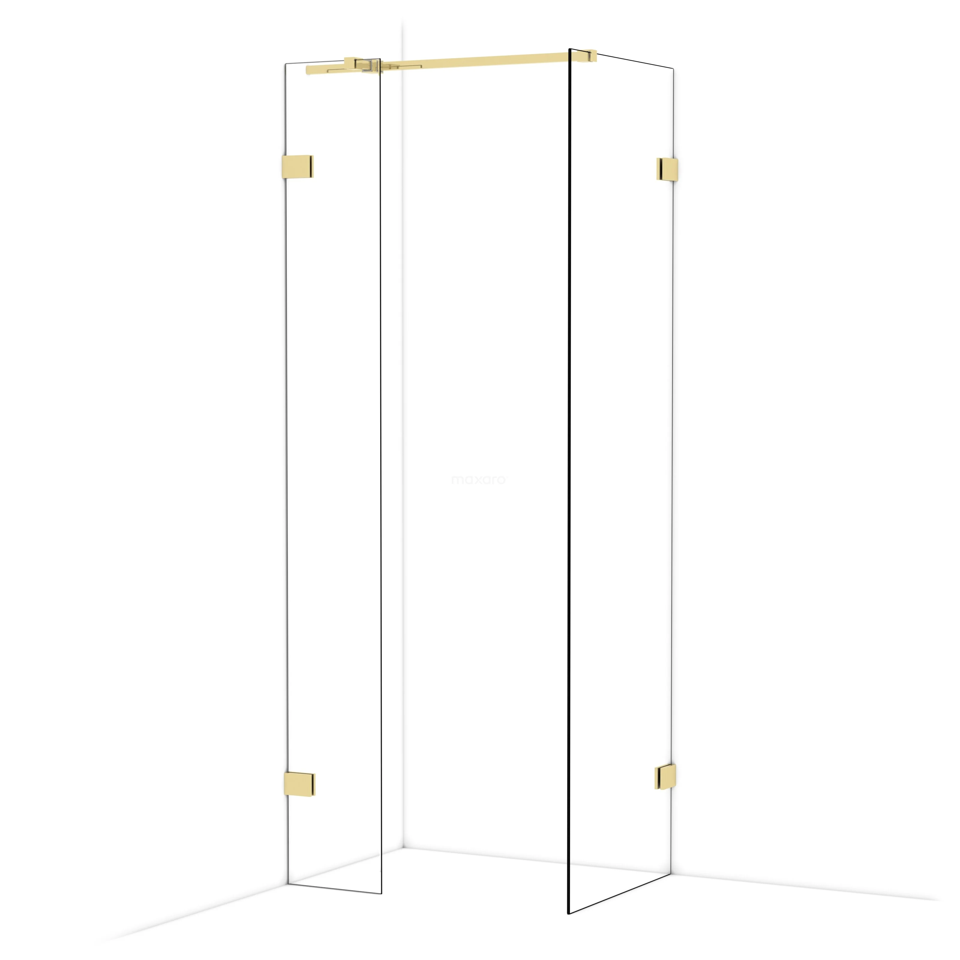 Diamond Inloopdouche | 60x30 cm Glanzend lichtgoud Helder glas 2 vaste wanden