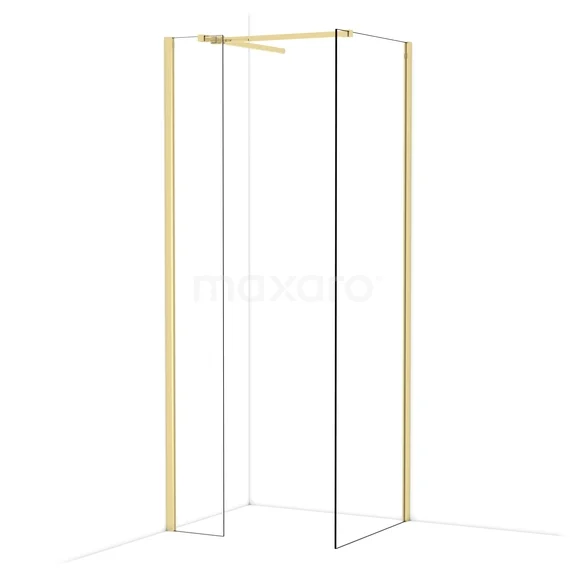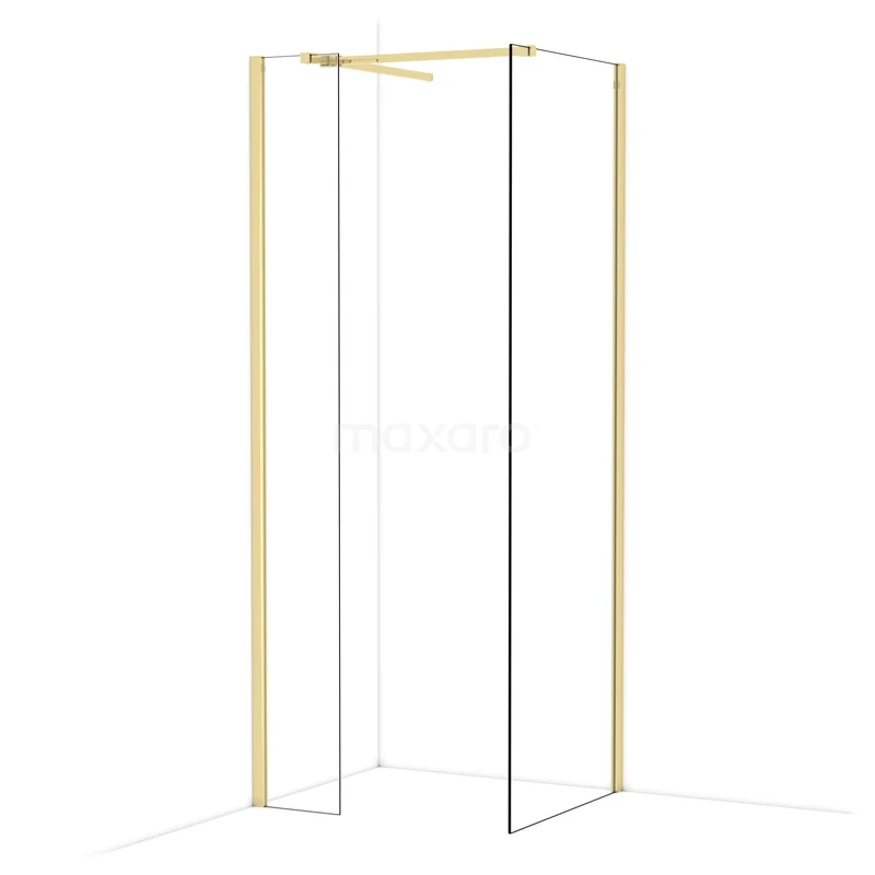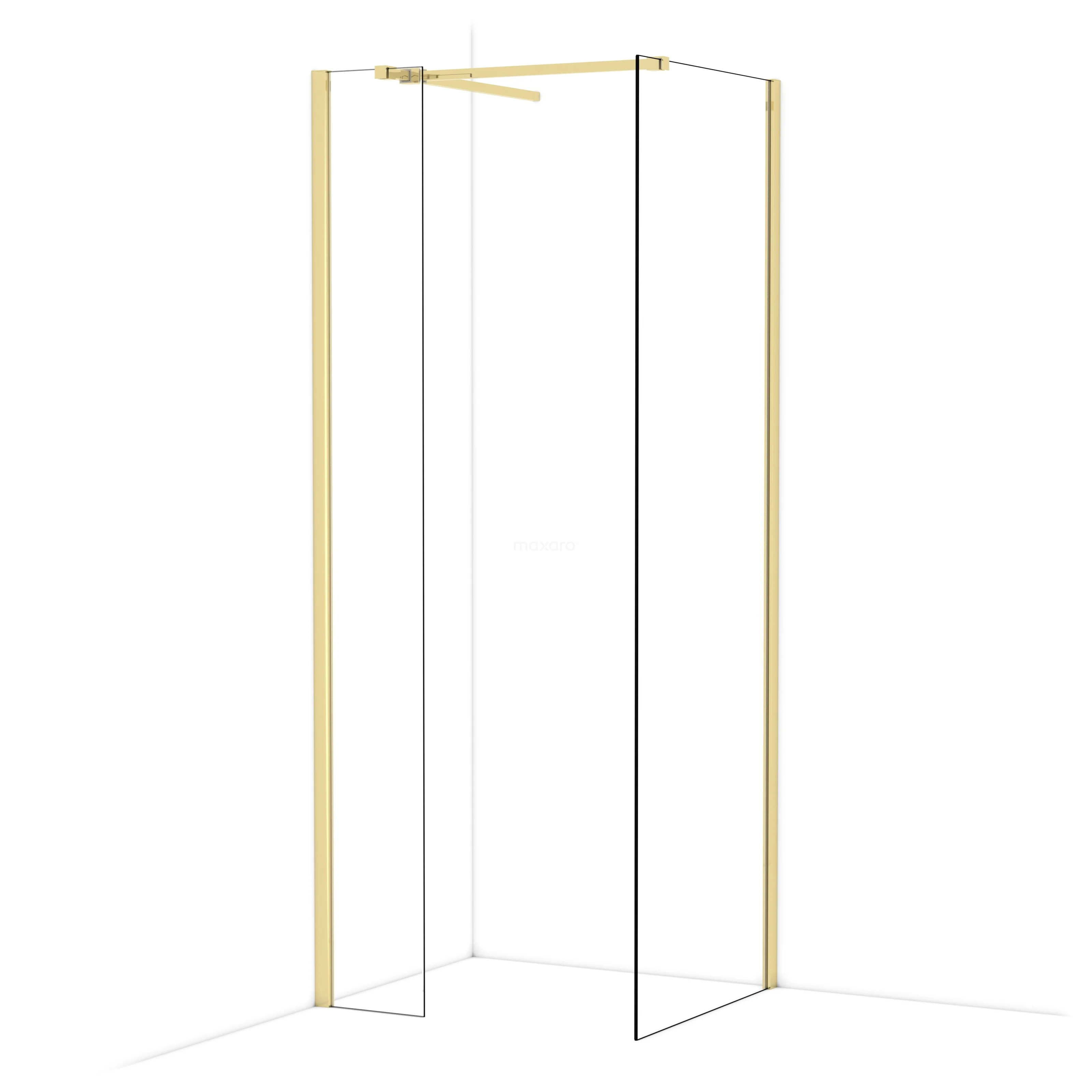 Diamond Inloopdouche | 70x30 cm Glanzend lichtgoud Helder glas 2 vaste wanden