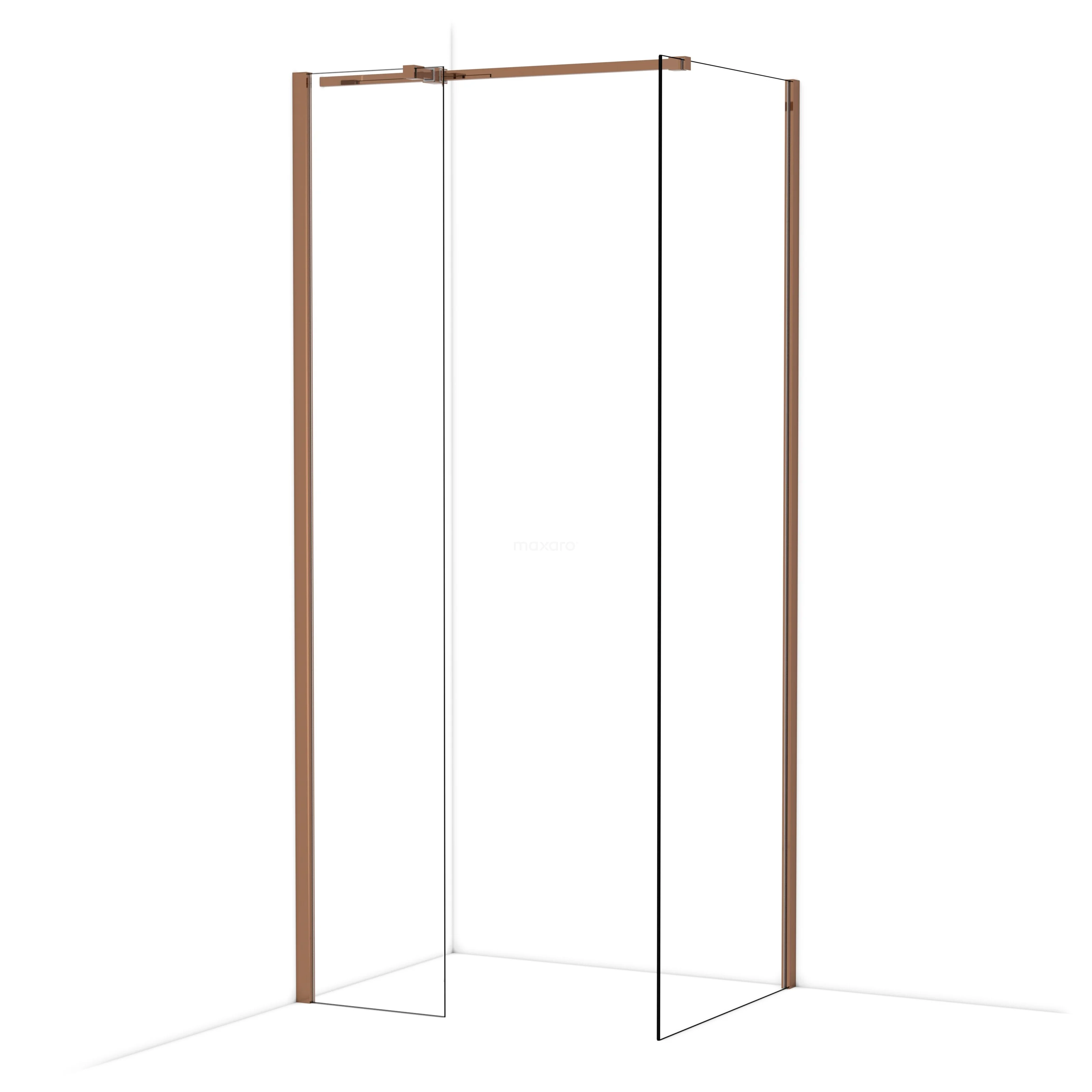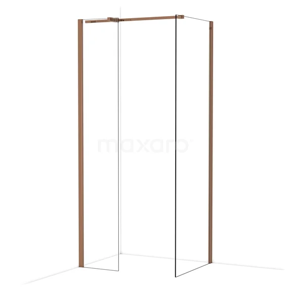 Diamond Inloopdouche | 70x40 cm Glanzend koper Helder glas 2 vaste wanden