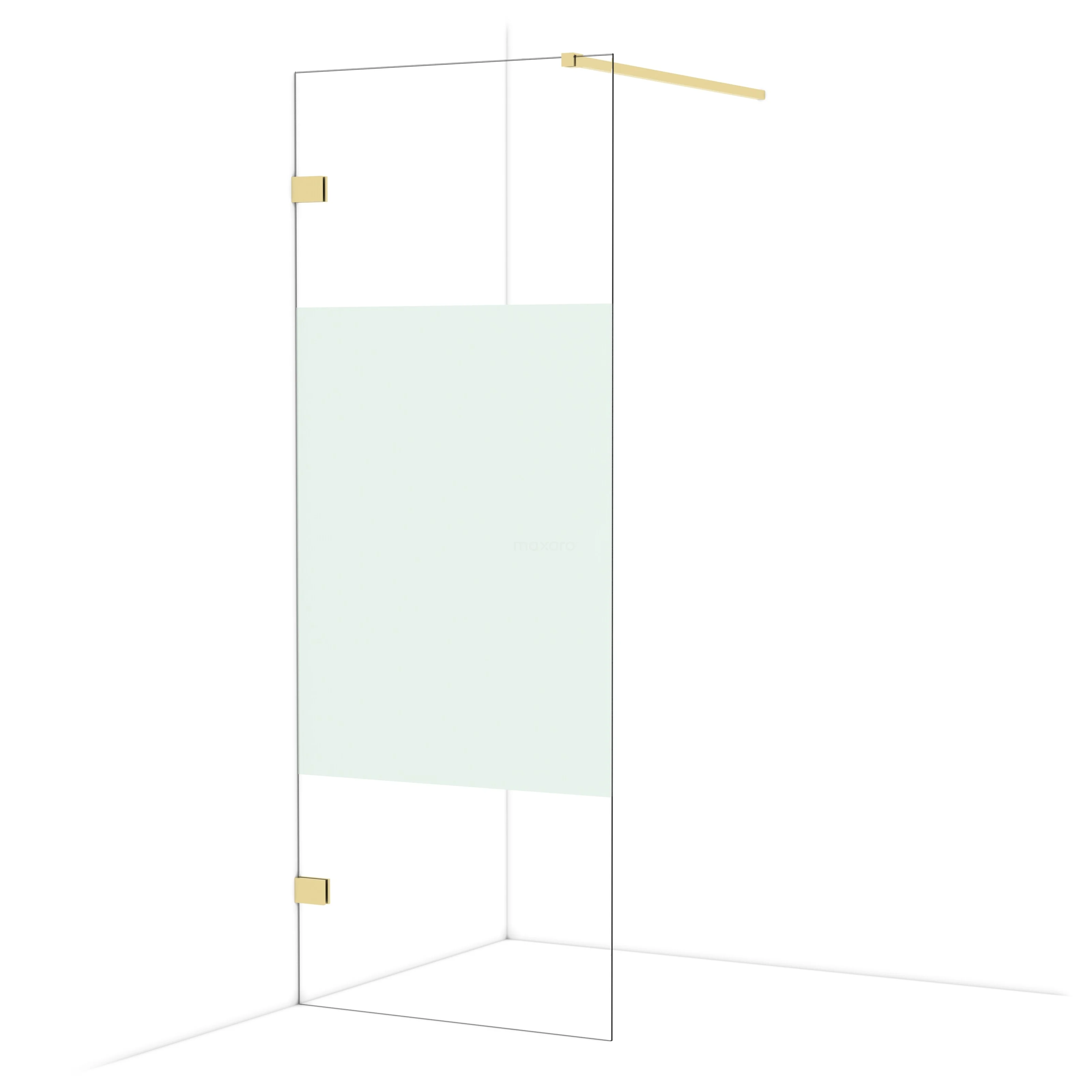 Diamond Inloopdouche | 80 cm Glanzend lichtgoud Helder met matte strook Vaste wand