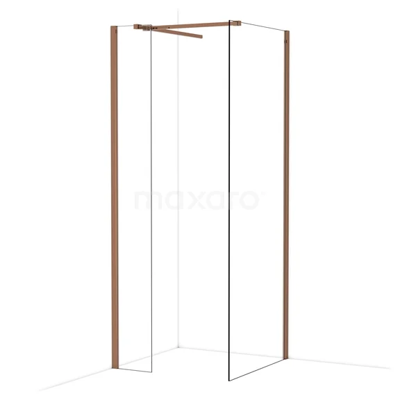 Diamond Inloopdouche | 80x30 cm Glanzend koper Helder glas 2 vaste wanden