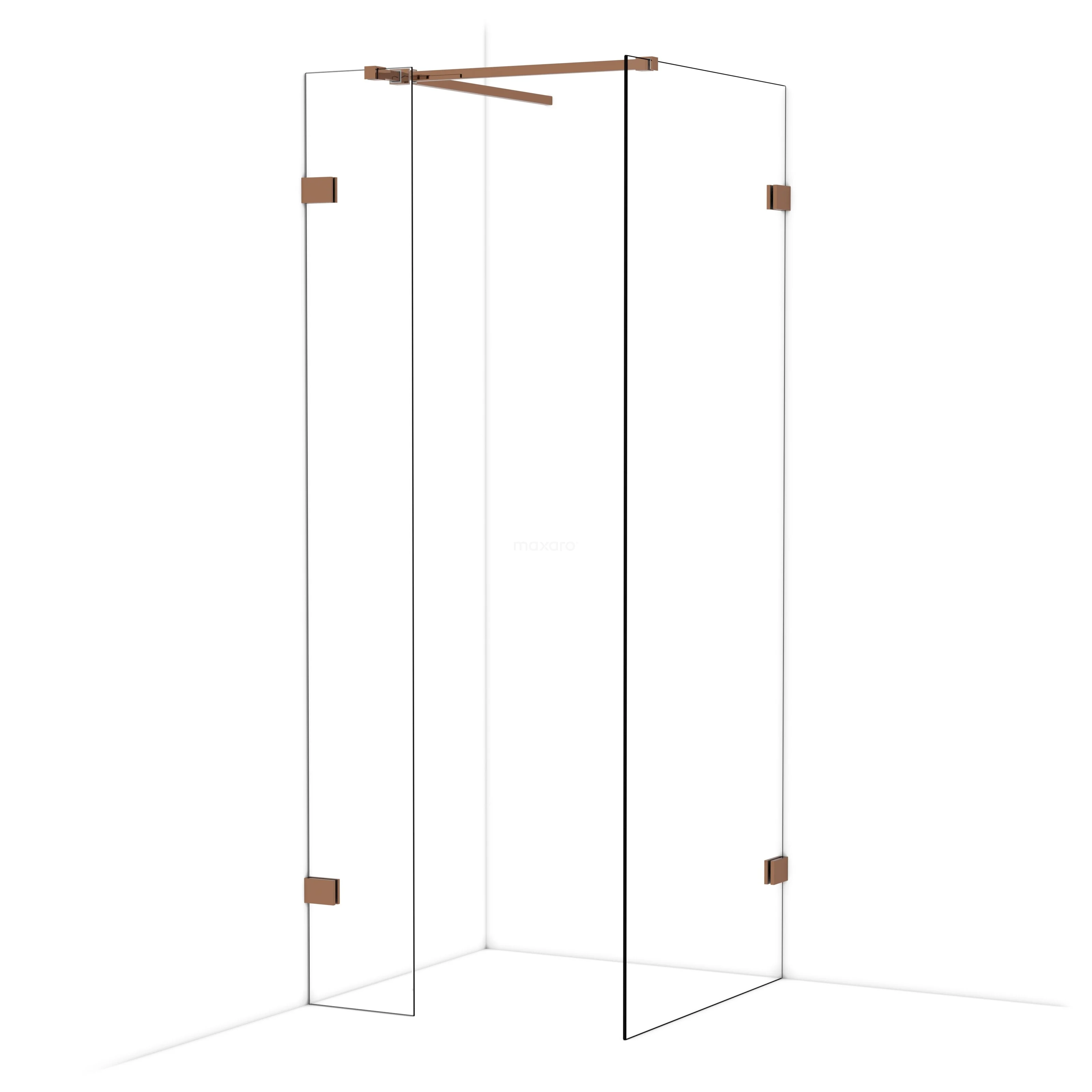 Diamond Inloopdouche | 80x30 cm Glanzend koper Helder glas 2 vaste wanden