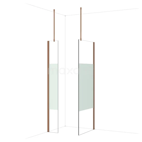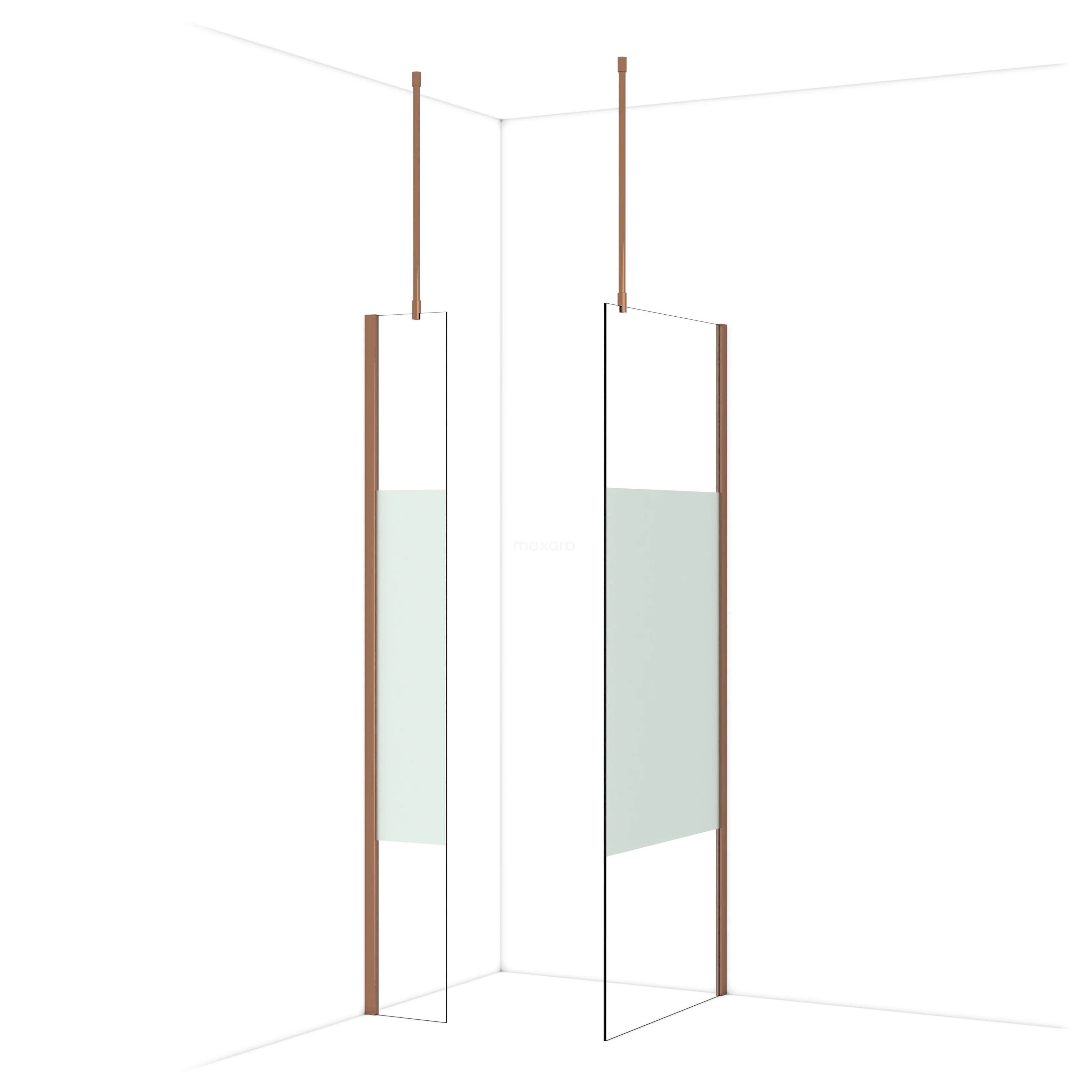 Diamond Inloopdouche | 80x30 cm Glanzend koper Helder met matte strook 2 vaste wanden