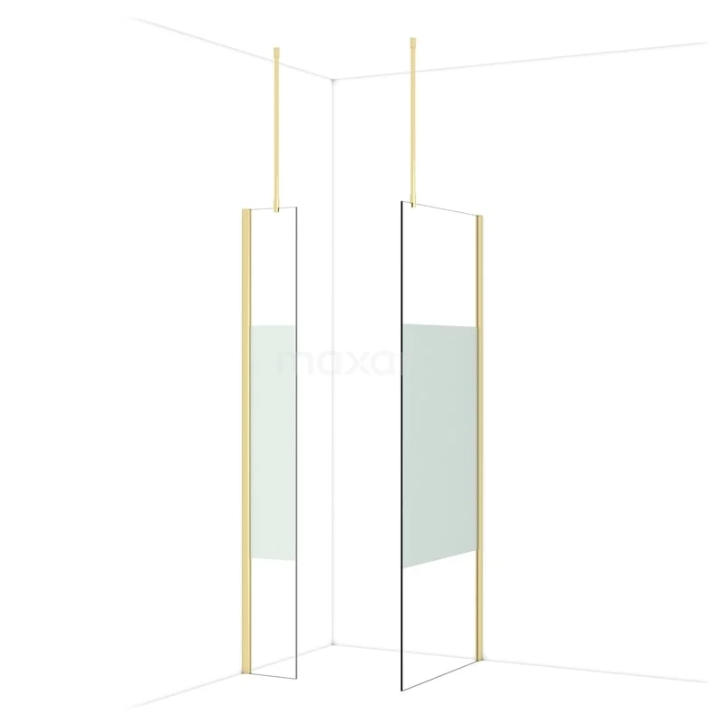 Diamond Inloopdouche | 80x30 cm Glanzend lichtgoud Helder met matte strook 2 vaste wanden