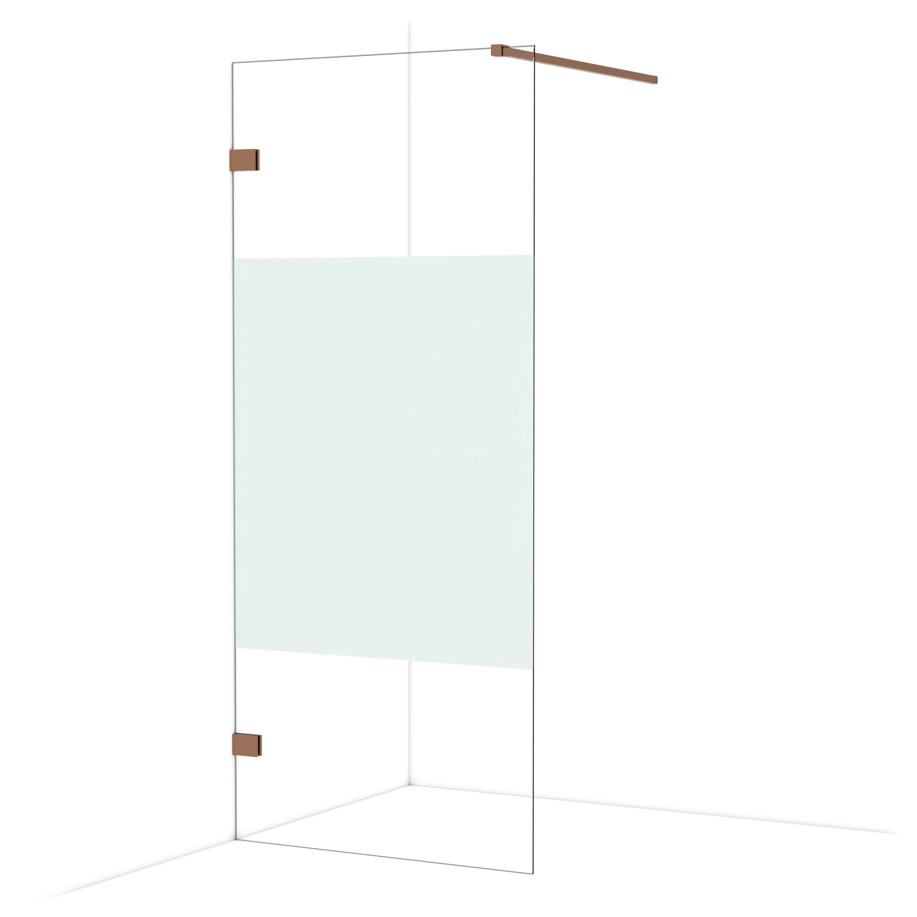 Diamond Inloopdouche | 90 cm Glanzend koper Helder met matte strook Vaste wand