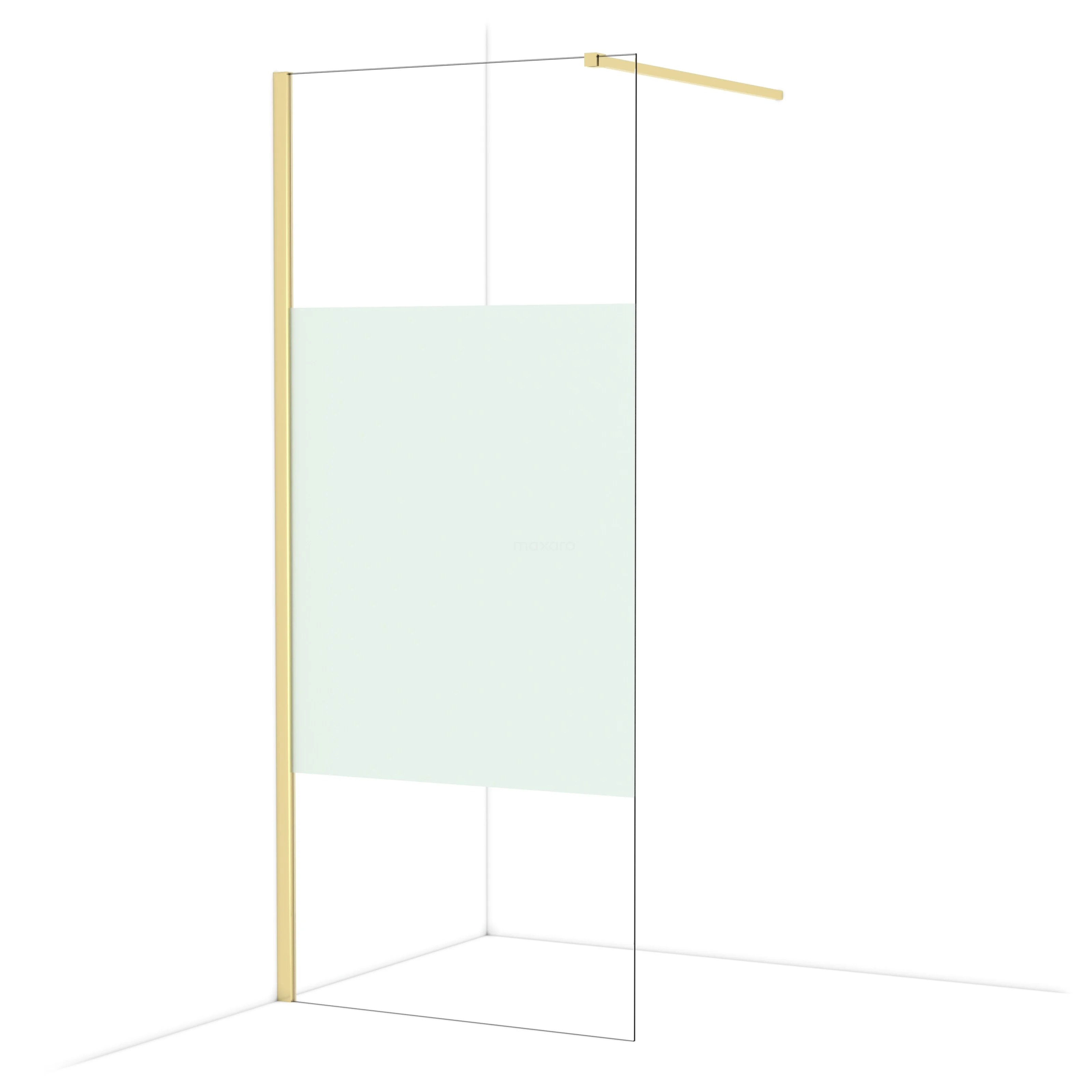 Diamond Inloopdouche | 90 cm Glanzend lichtgoud Helder met matte strook Vaste wand