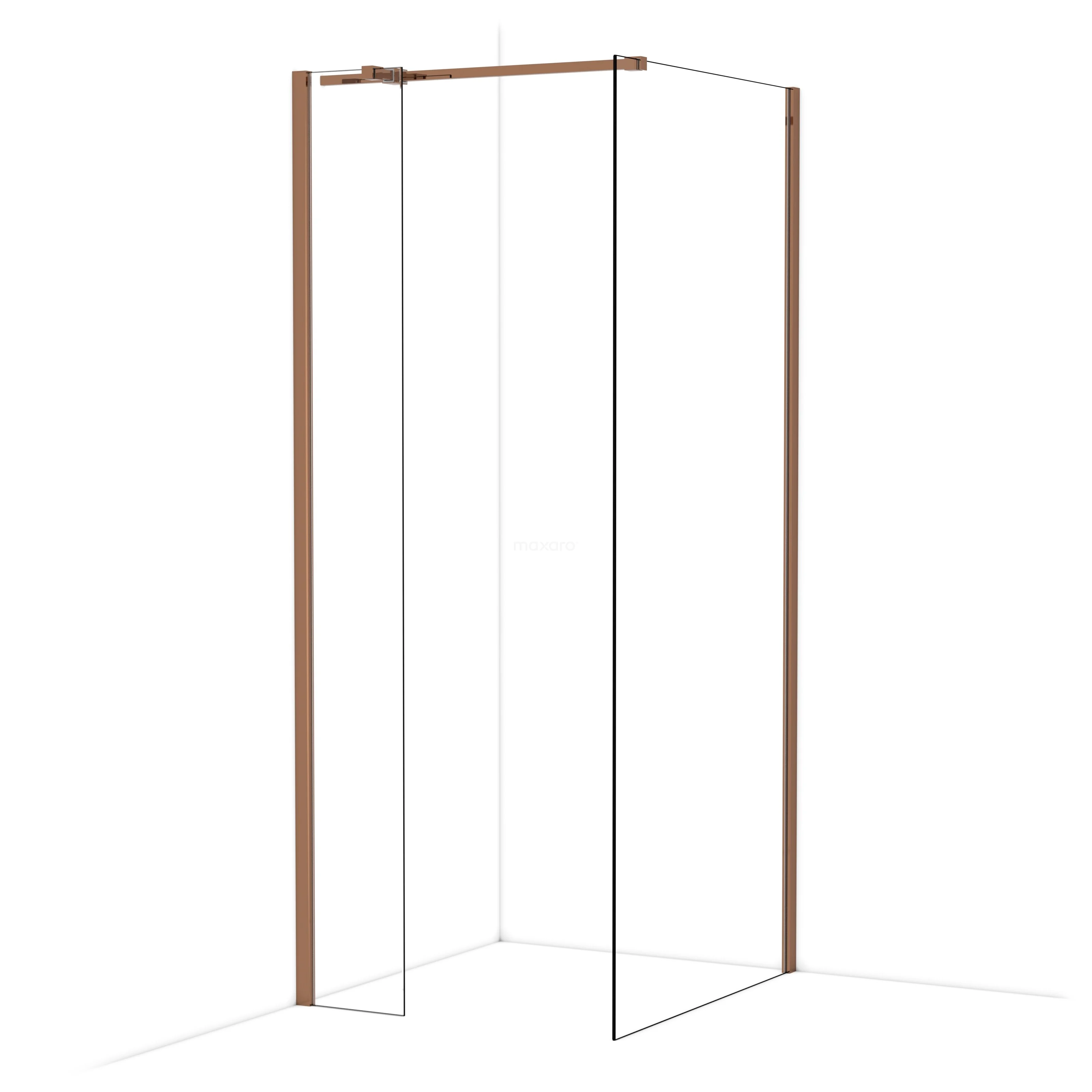 Diamond Inloopdouche | 90x30 cm Glanzend koper Helder glas 2 vaste wanden
