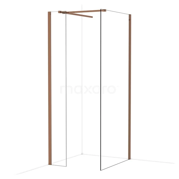 Diamond Inloopdouche | 90x30 cm Glanzend koper Helder glas 2 vaste wanden