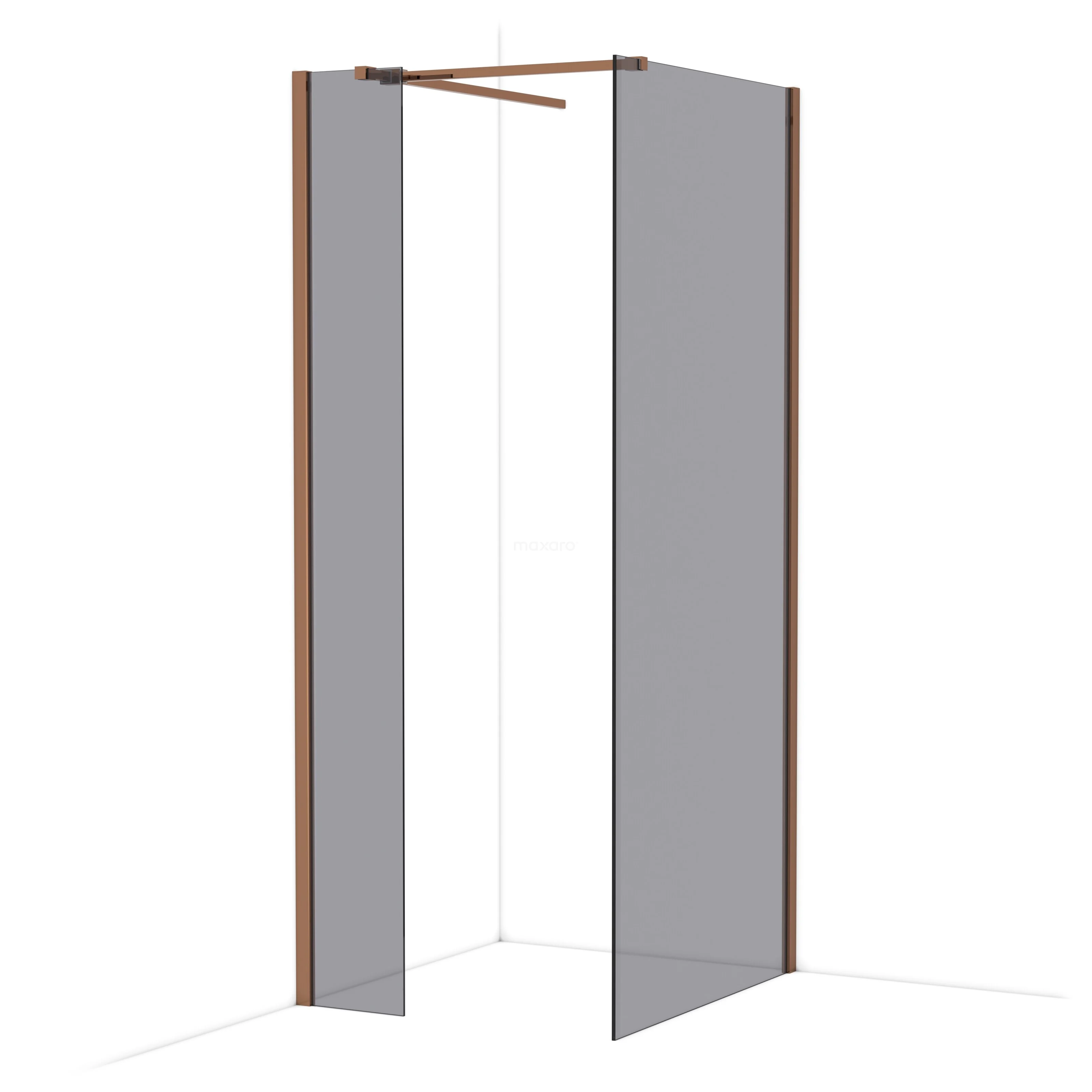 Diamond Inloopdouche | 90x30 cm Glanzend koper Rookglas 2 vaste wanden