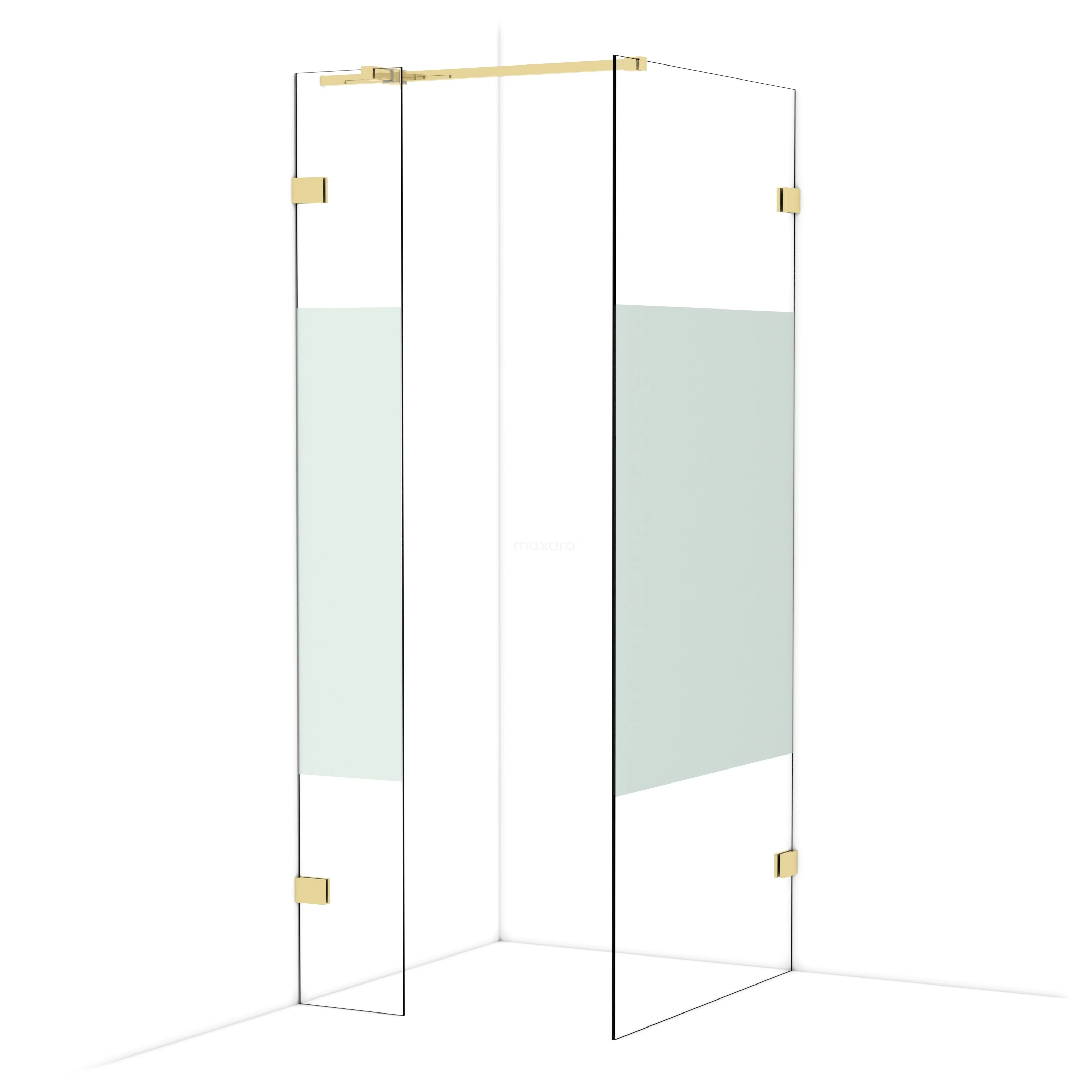 Diamond Inloopdouche | 90x30 cm Glanzend lichtgoud Helder met matte strook 2 vaste wanden