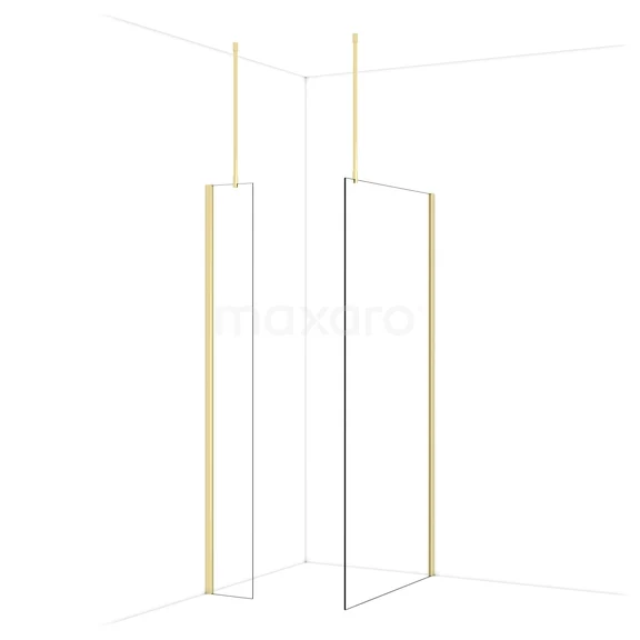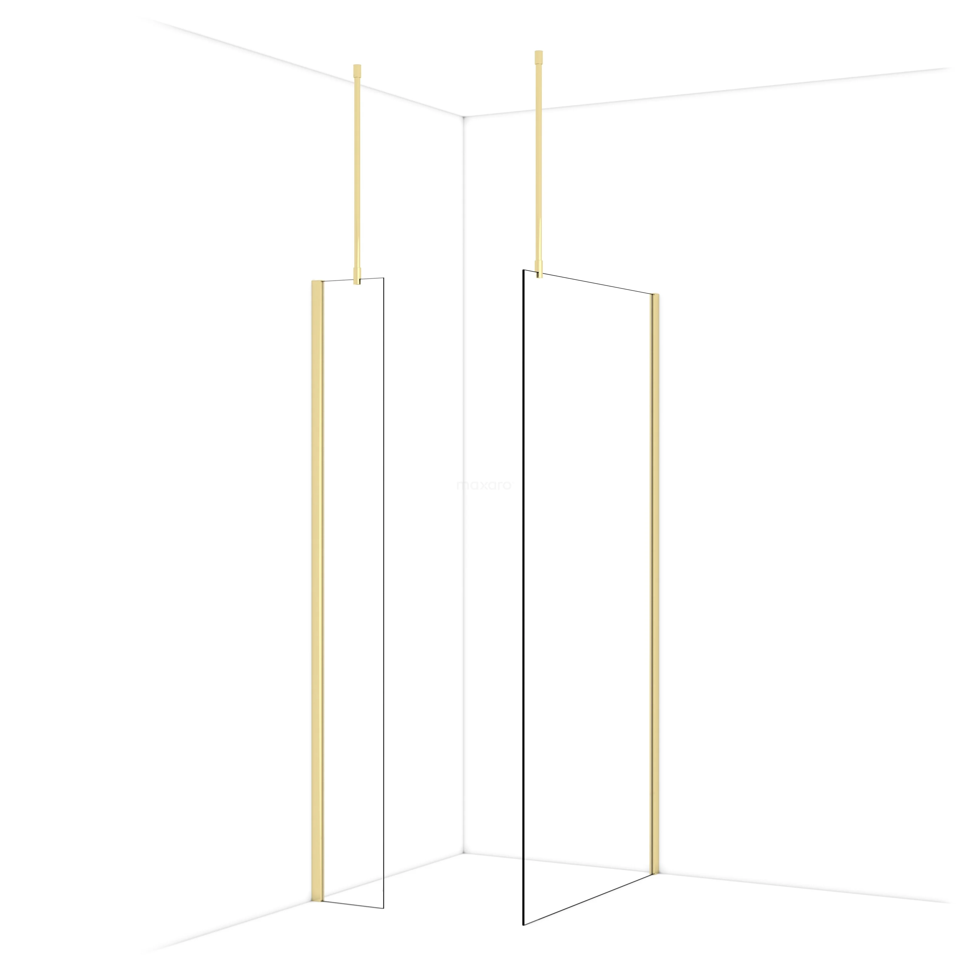 Diamond Inloopdouche | 100x30 cm Glanzend lichtgoud Helder glas 2 vaste wanden