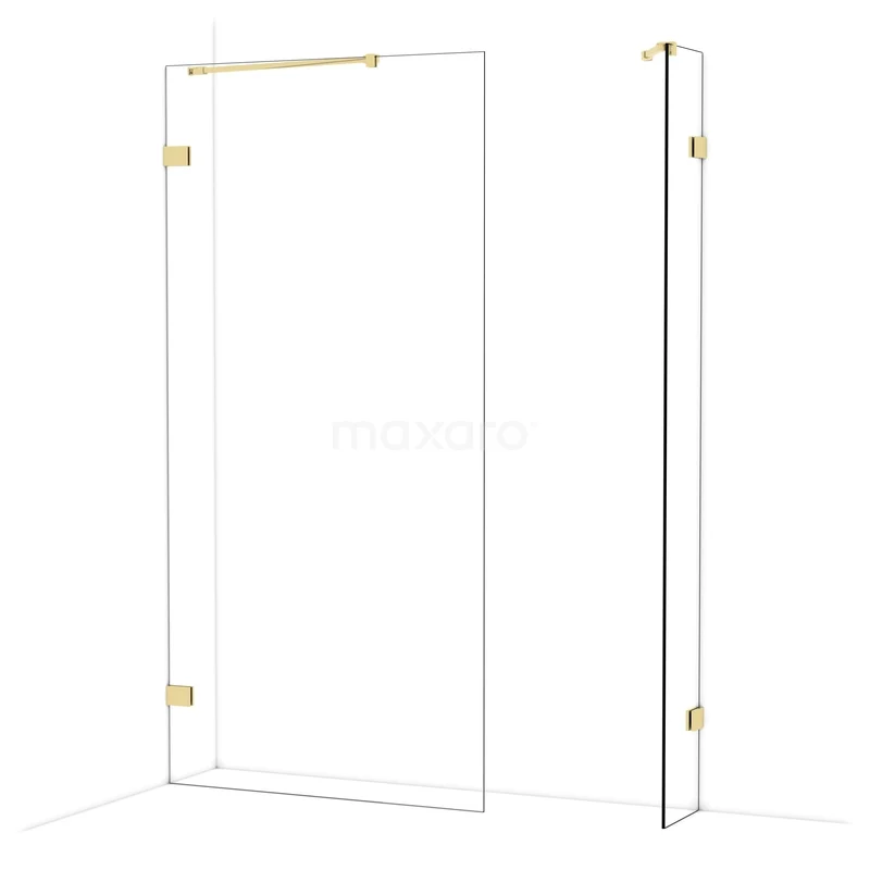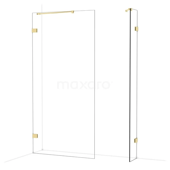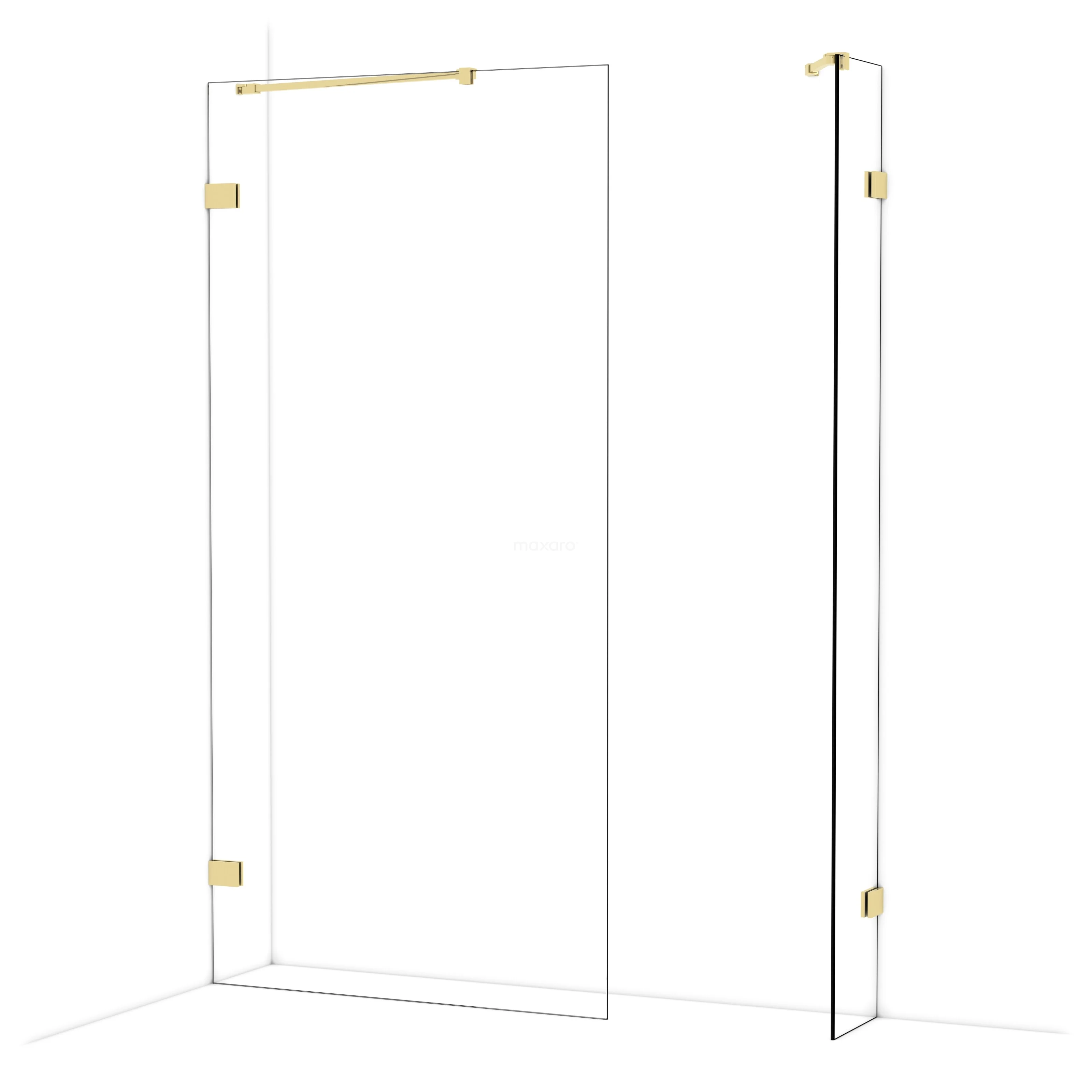 Diamond Inloopdouche | 100x30 cm Glanzend lichtgoud Helder glas 2 vaste wanden