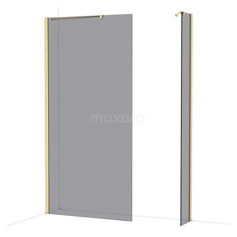 Diamond Inloopdouche | 100x30 cm Glanzend lichtgoud Rookglas 2 vaste wanden