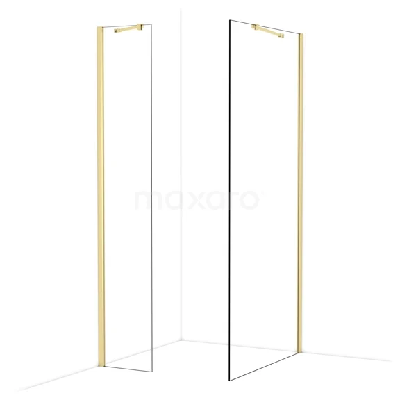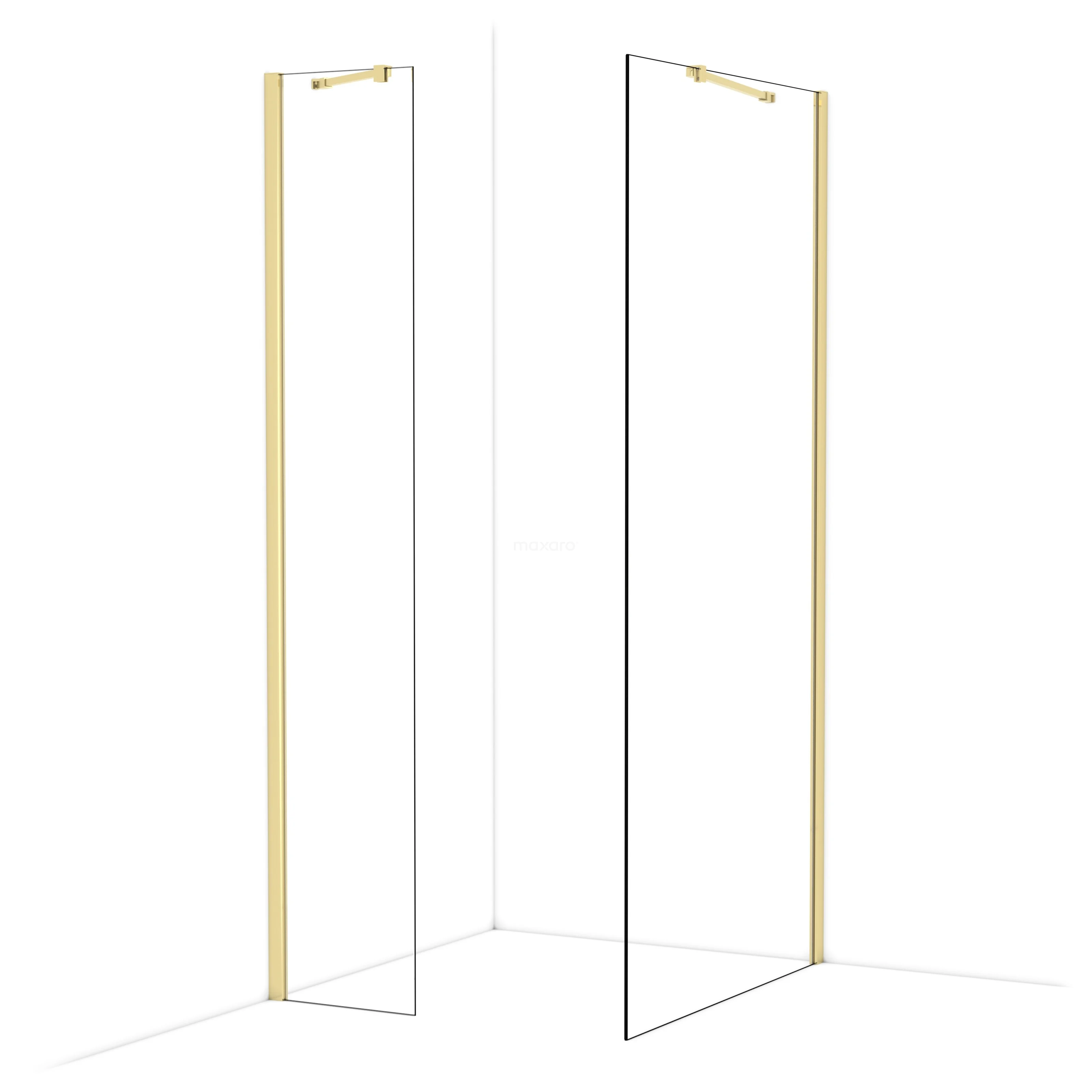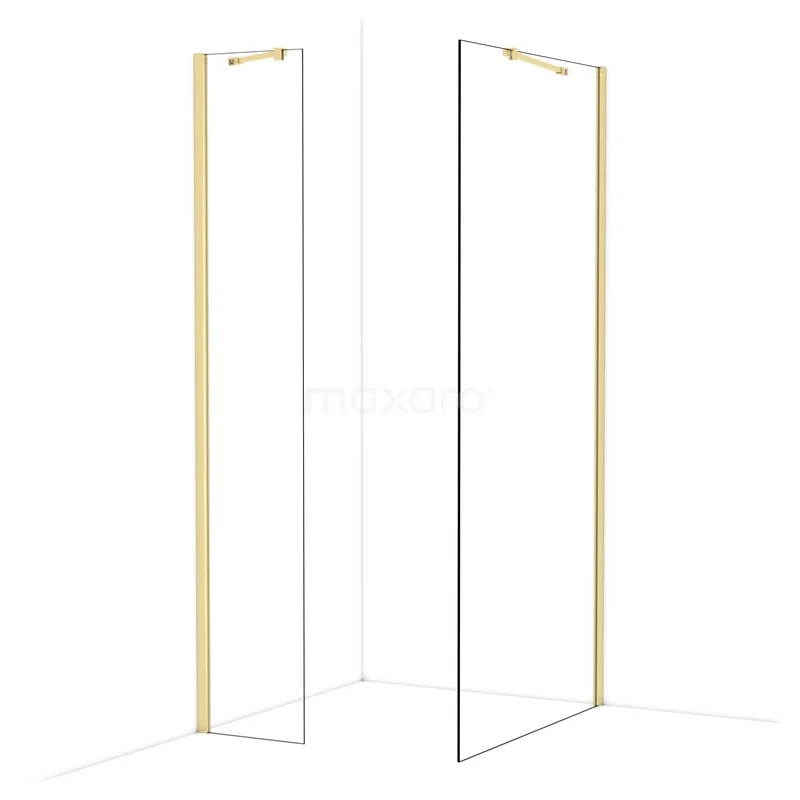 Diamond Inloopdouche | 100x40 cm Glanzend lichtgoud Helder glas 2 vaste wanden