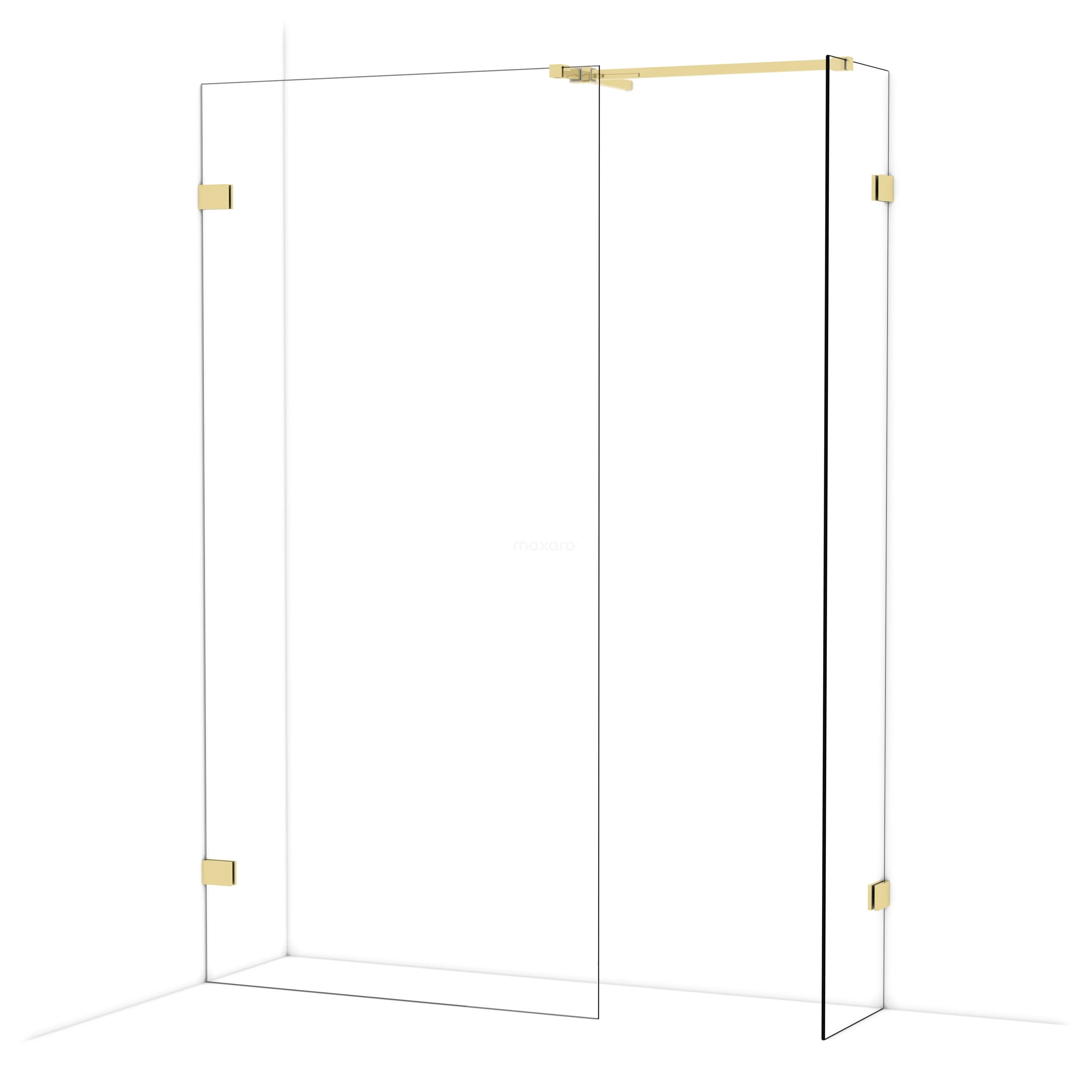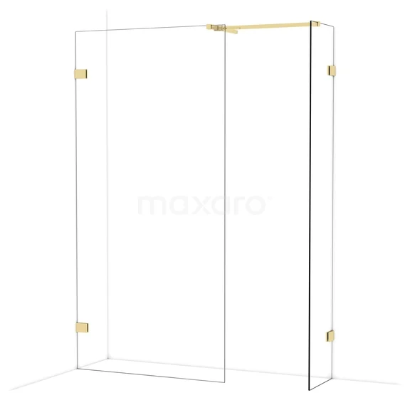 Diamond Inloopdouche | 100x40 cm Glanzend lichtgoud Helder glas 2 vaste wanden