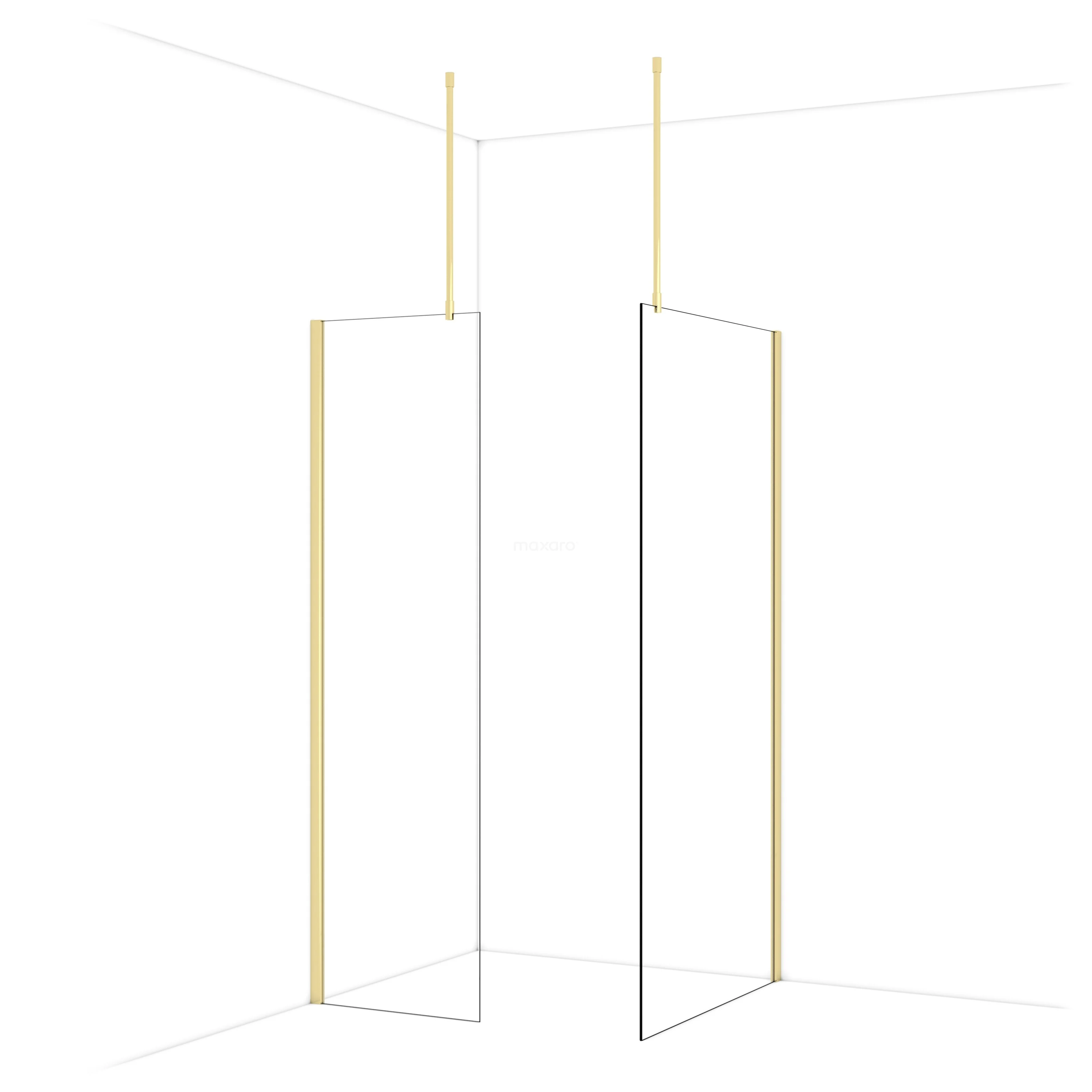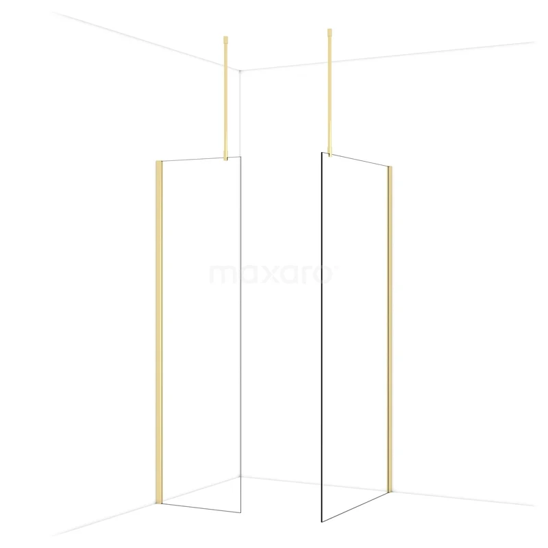 Diamond Inloopdouche | 100x60 cm Glanzend lichtgoud Helder glas 2 vaste wanden