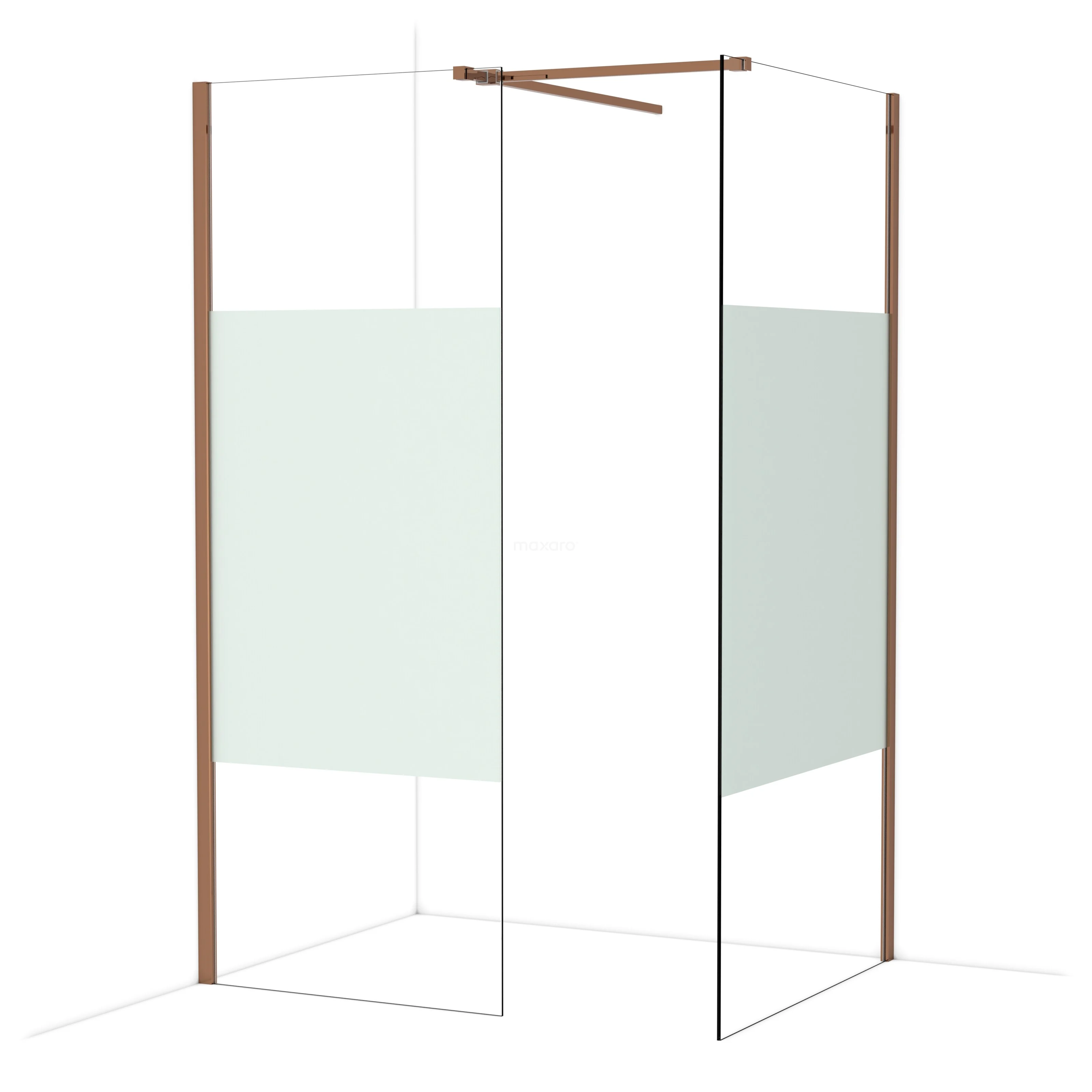 Diamond Inloopdouche | 100x80 cm Glanzend koper Helder met matte strook 2 vaste wanden
