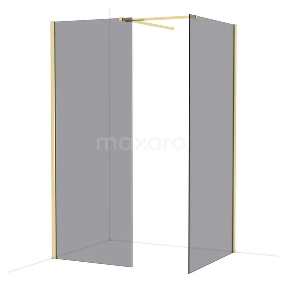 Diamond Inloopdouche | 100x80 cm Glanzend lichtgoud Rookglas 2 vaste wanden