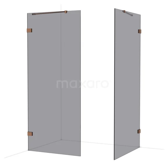 Diamond Inloopdouche | 100x90 cm Glanzend koper Rookglas 2 vaste wanden