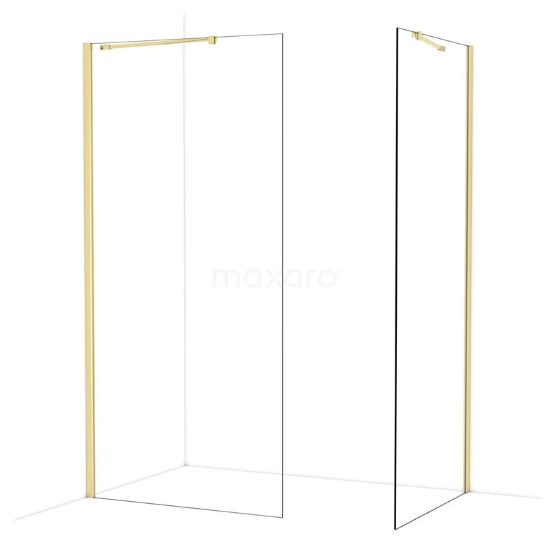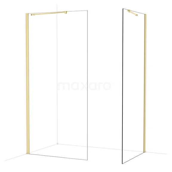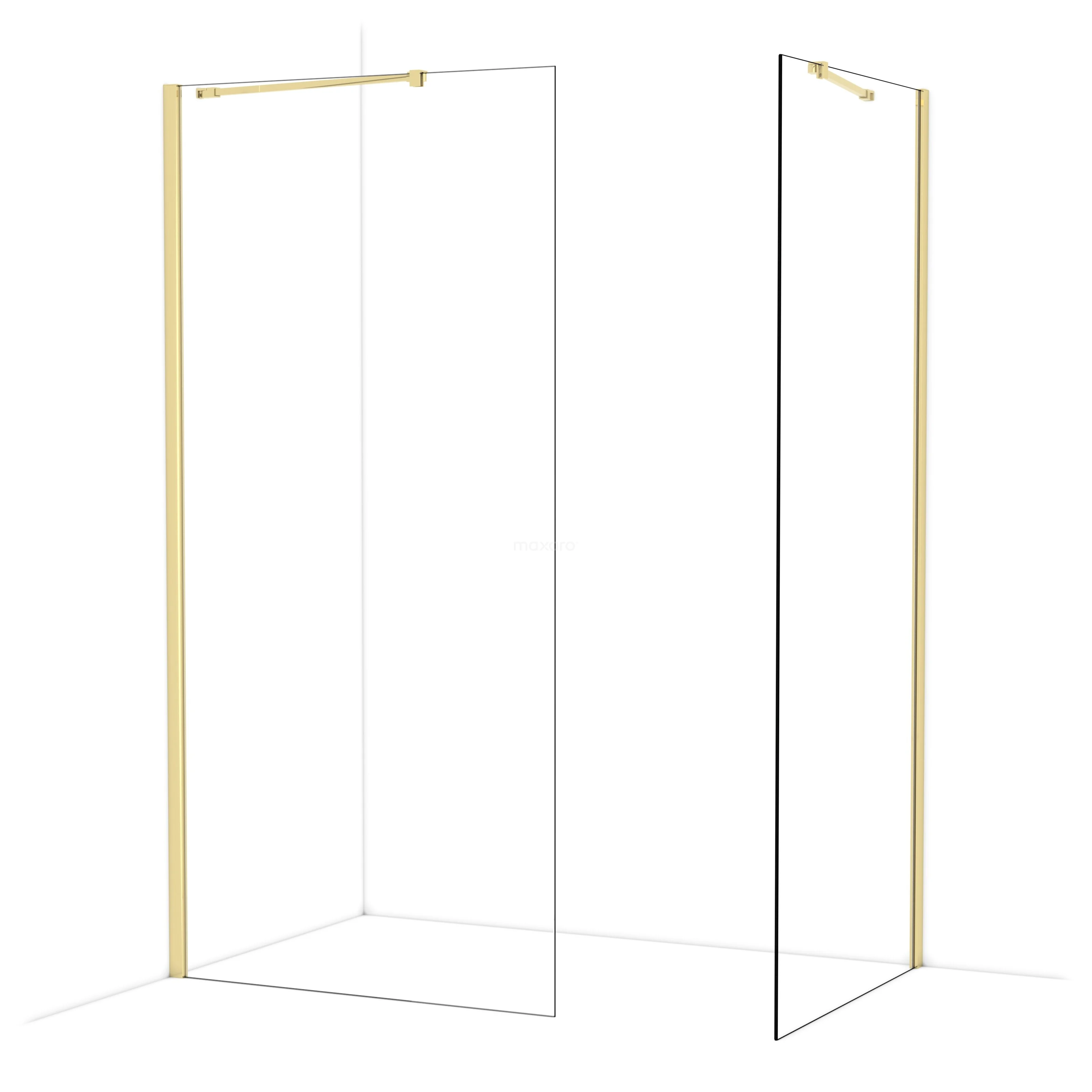 Diamond Inloopdouche | 100x90 cm Glanzend lichtgoud Helder glas 2 vaste wanden