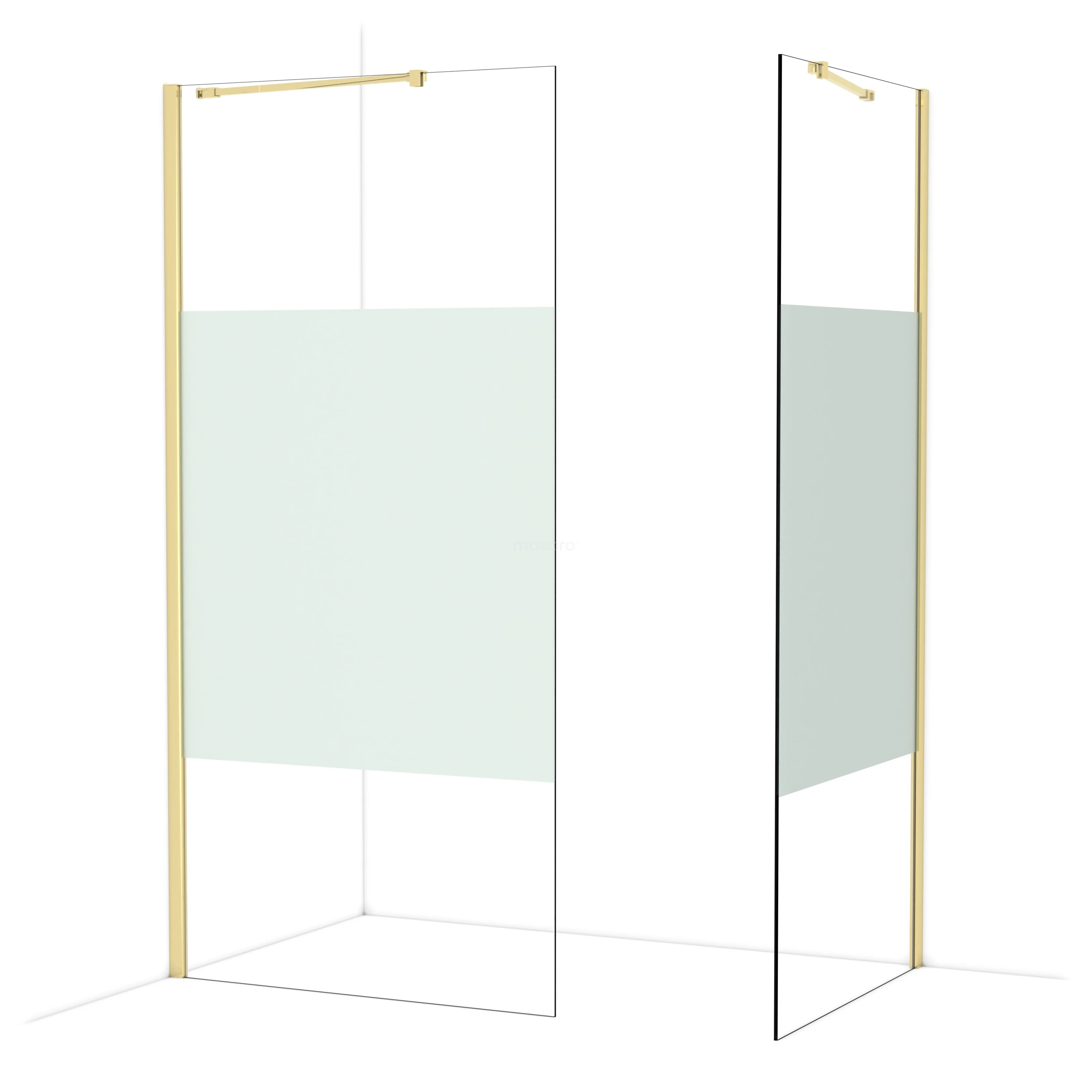 Diamond Inloopdouche | 100x90 cm Glanzend lichtgoud Helder met matte strook 2 vaste wanden