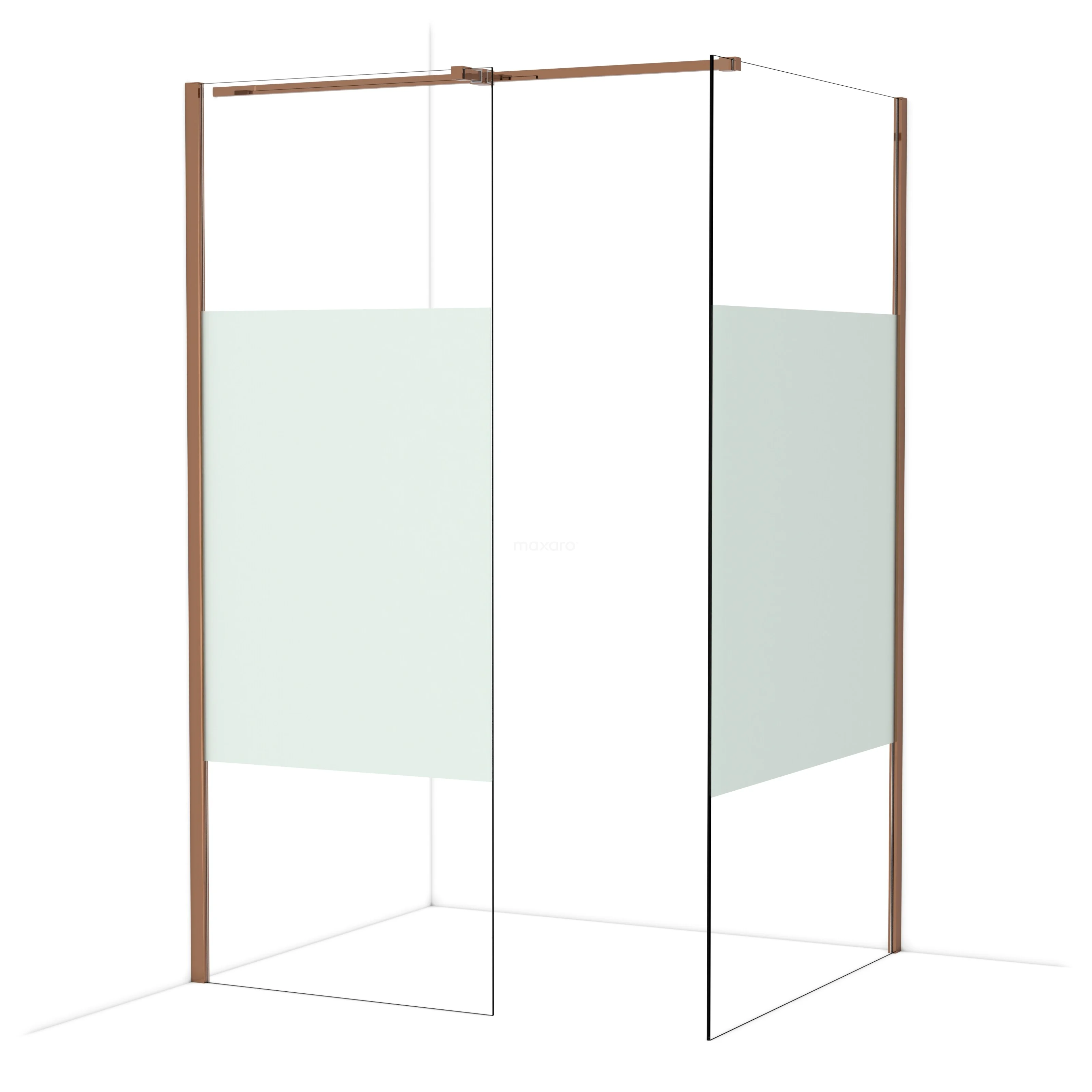 Diamond Inloopdouche | 110x80 cm Glanzend koper Helder met matte strook 2 vaste wanden