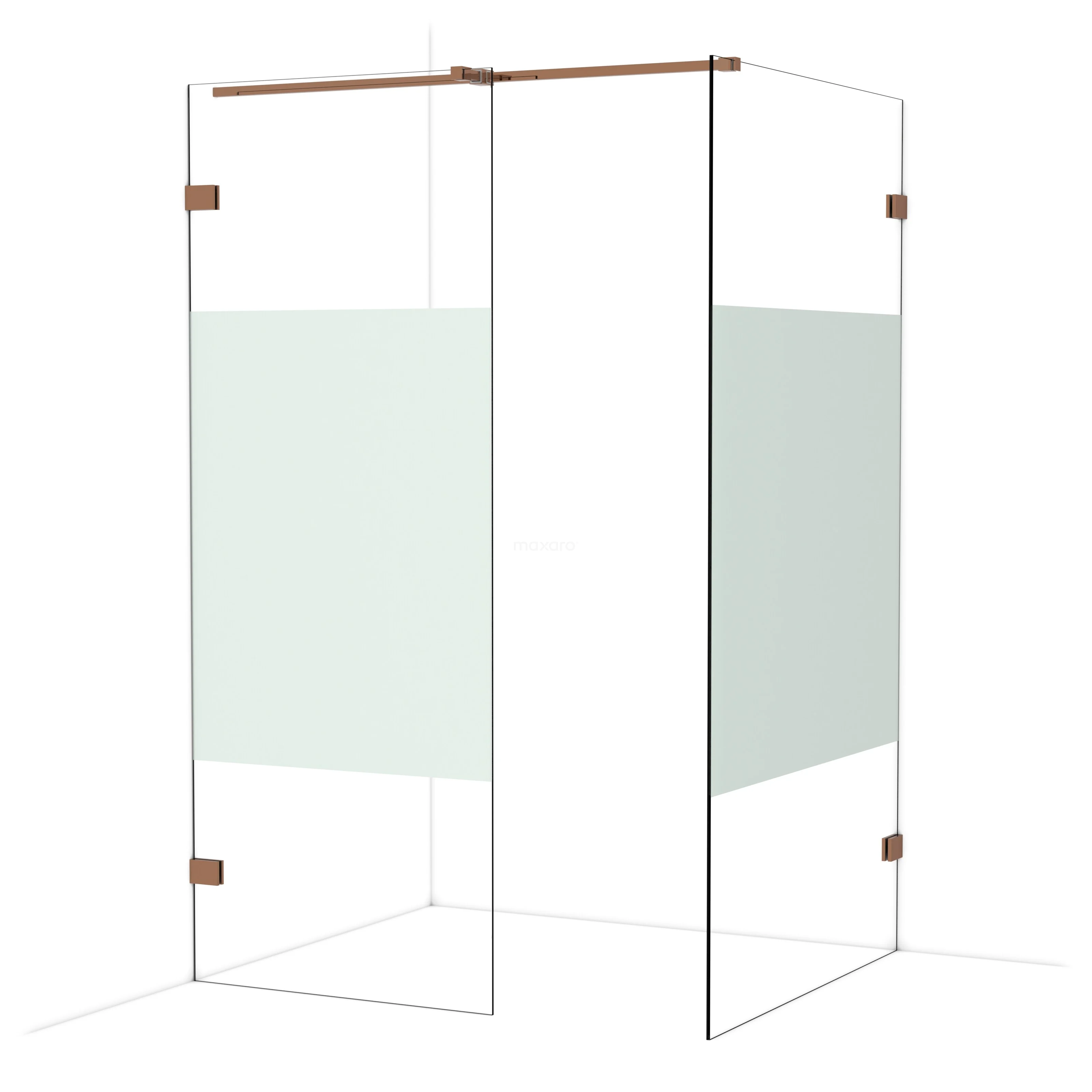Diamond Inloopdouche | 110x80 cm Glanzend koper Helder met matte strook 2 vaste wanden