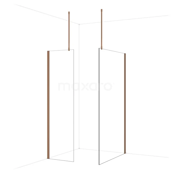 Diamond Inloopdouche | 120x60 cm Glanzend koper Helder glas 2 vaste wanden