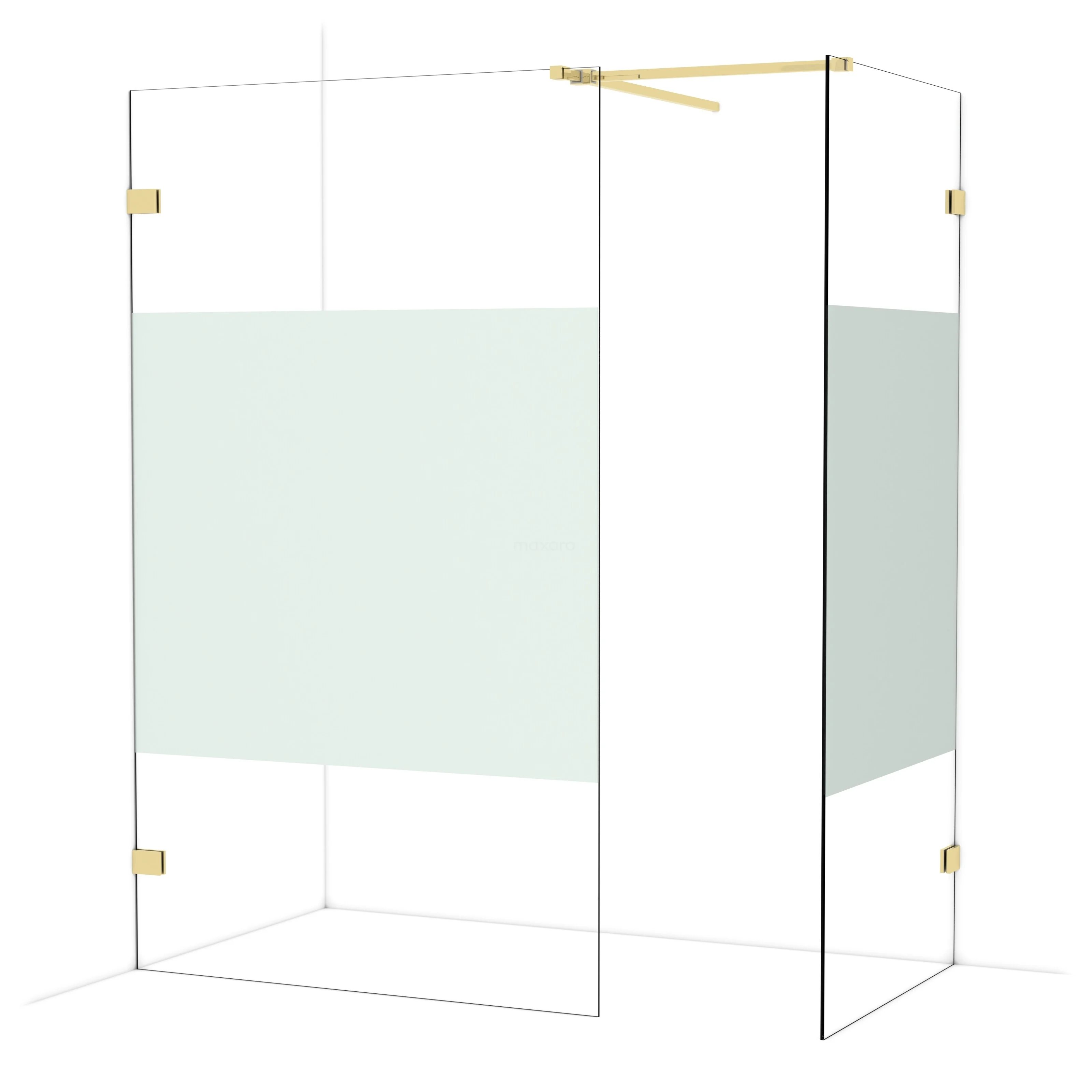 In de stijlvolle Diamond-inloopdouche met een afmeting van 120x90 cm geniet je dagelijks van heerlijke douchesessies. Dit exemplaar heeft een verfijnd en luxe design van glanzend lichtgoud en is voorzien van helder glas met matte strook voor meer privacy.