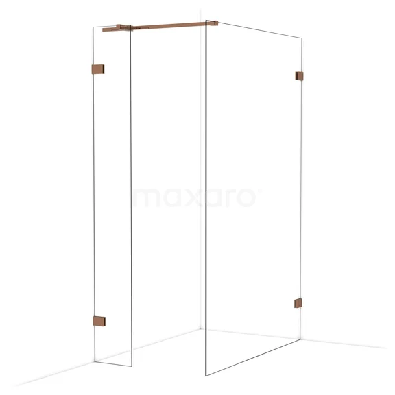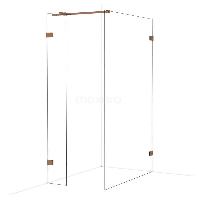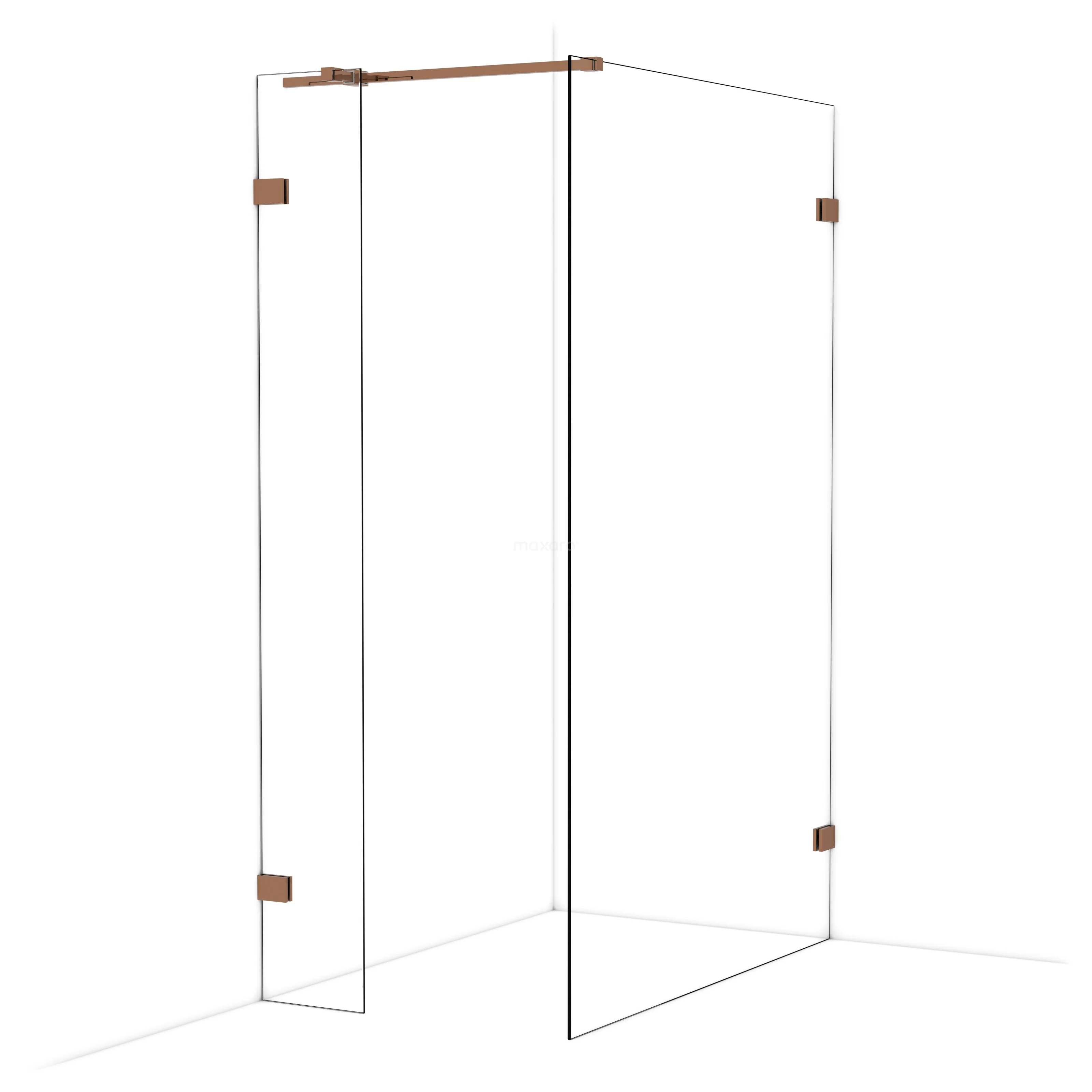 Diamond Inloopdouche | 130x30 cm Glanzend koper Helder glas 2 vaste wanden