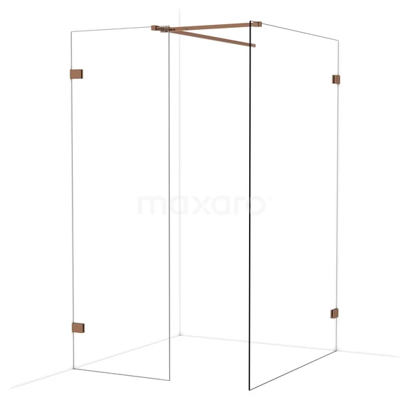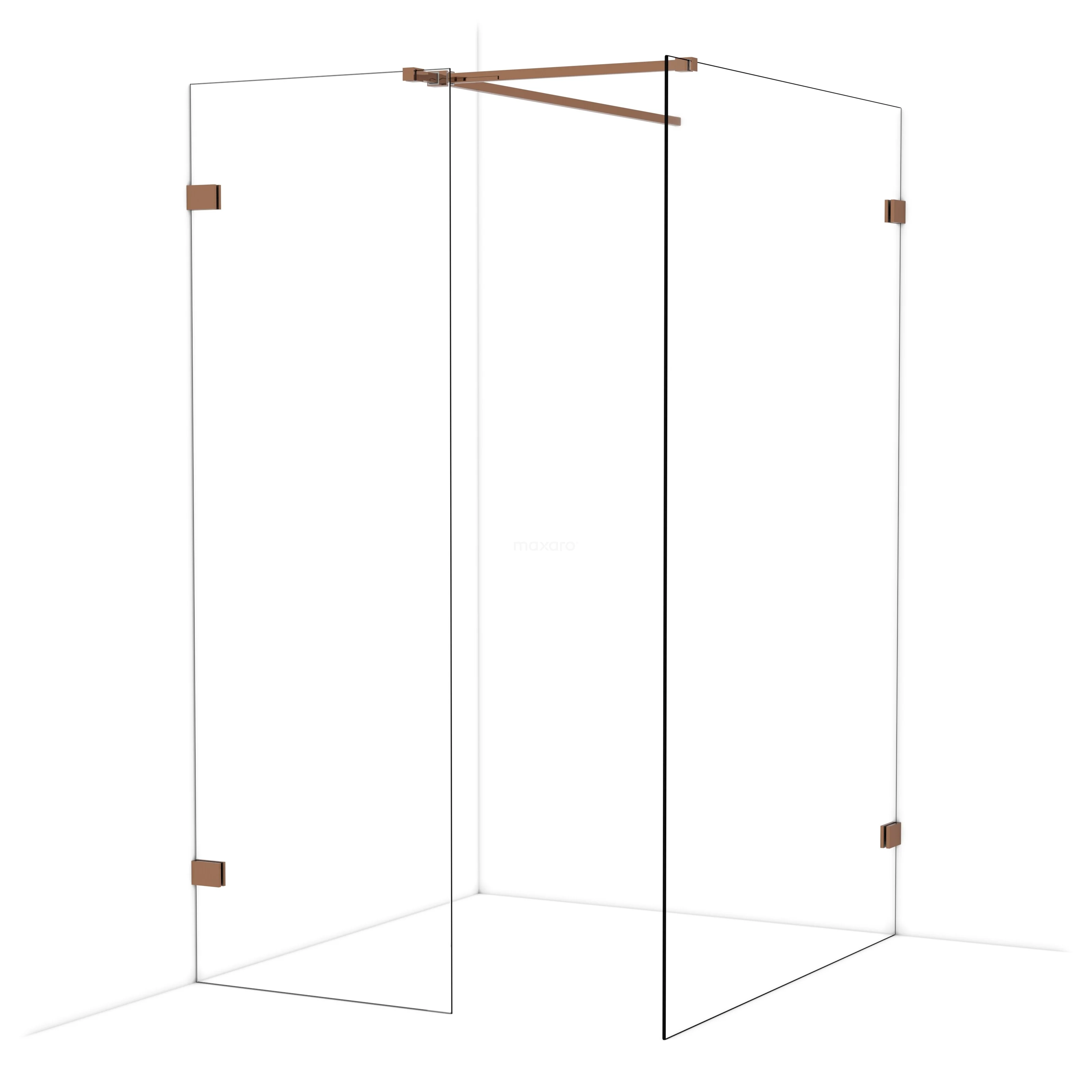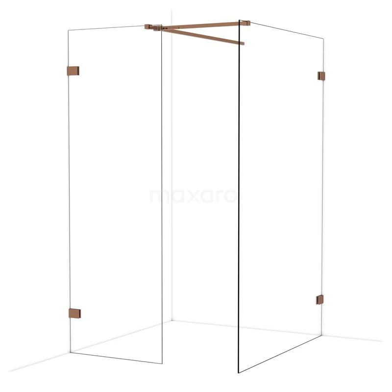Diamond Inloopdouche | 130x70 cm Glanzend koper Helder glas 2 vaste wanden