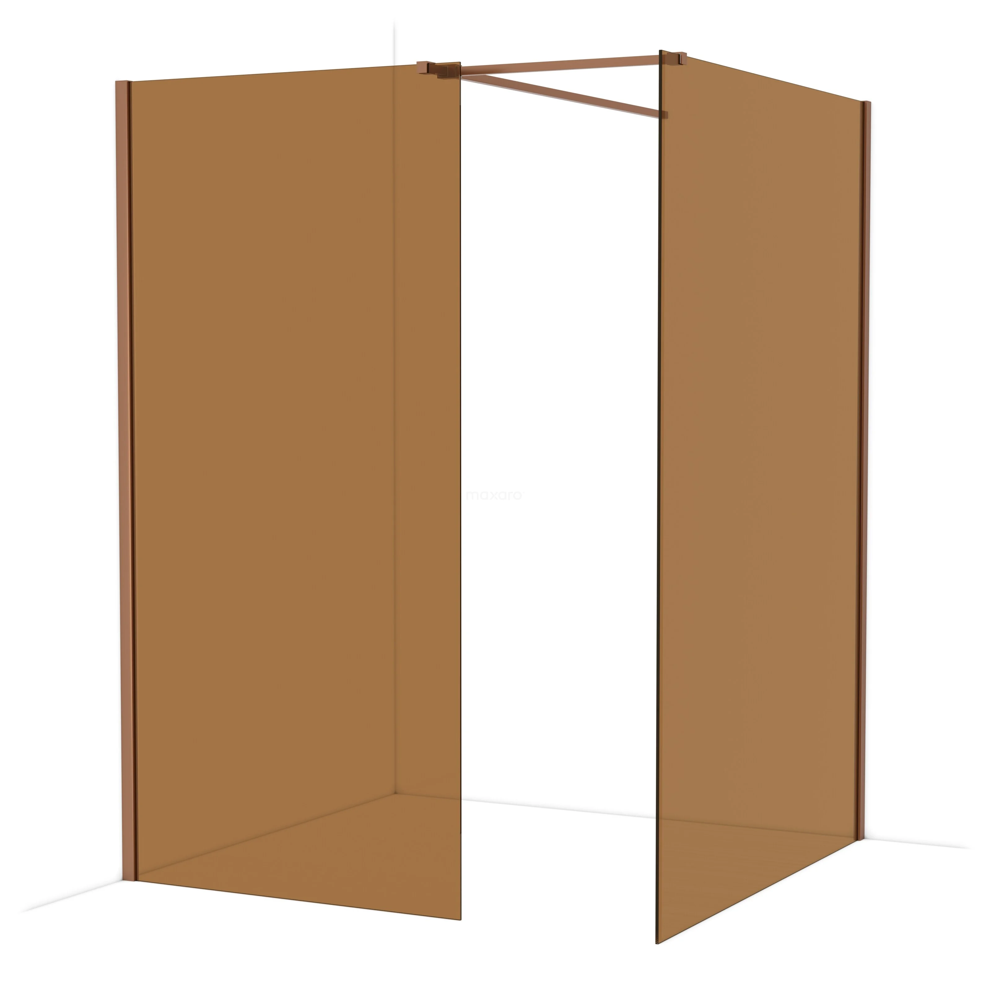 In de stijlvolle Diamond-inloopdouche met een afmeting van 140x100 cm geniet je dagelijks van heerlijke douchesessies. Dit exemplaar heeft een koperen afwerking en is voorzien van bronsglas. Dit glas design zorgt voor een warme, luxe sfeer en filtert het licht subtiel voor meer geborgenheid in de badkamer. De glaswand is gespiegeld te monteren.