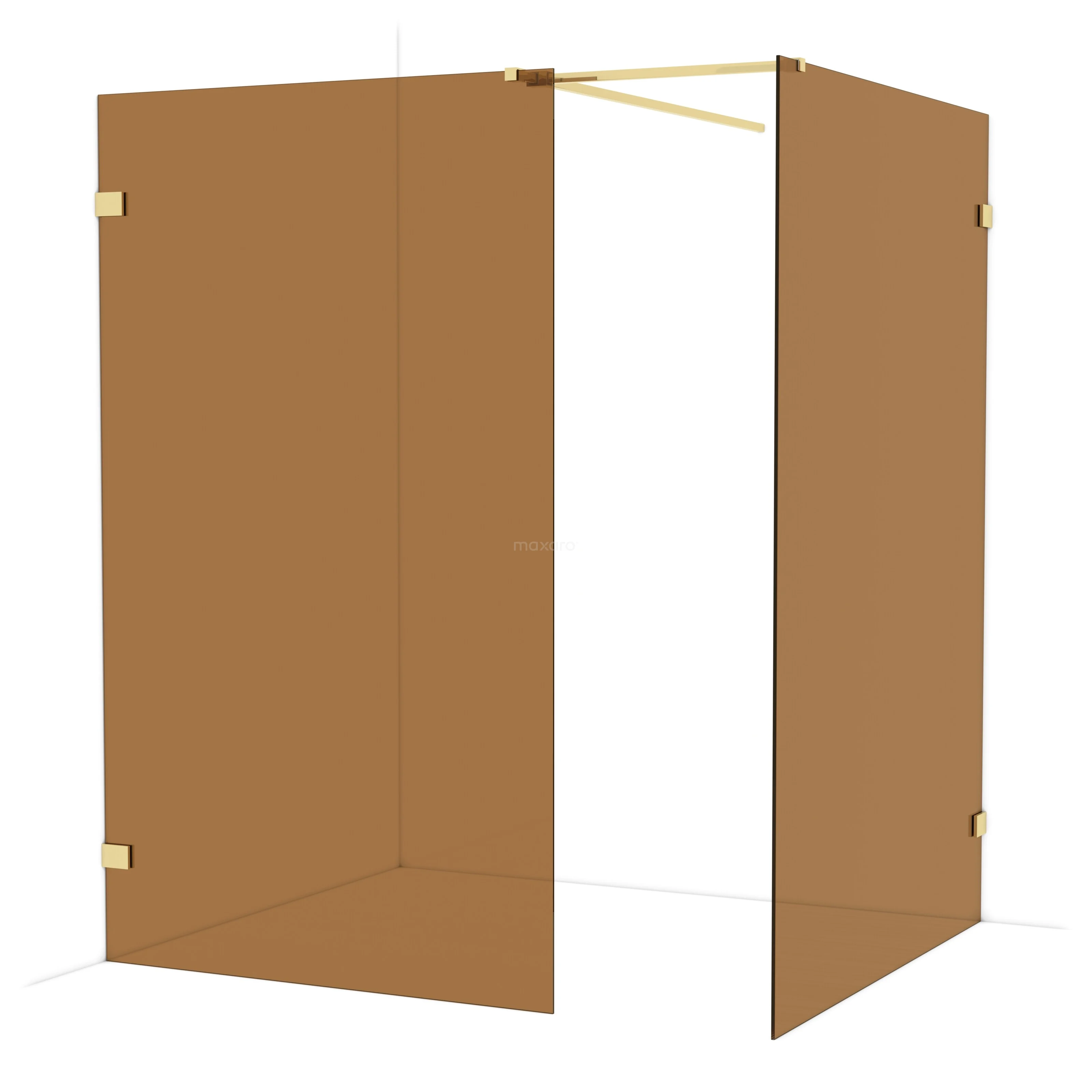 Diamond Inloopdouche | 140x120 cm Glanzend lichtgoud Bronsglas 2 vaste wanden