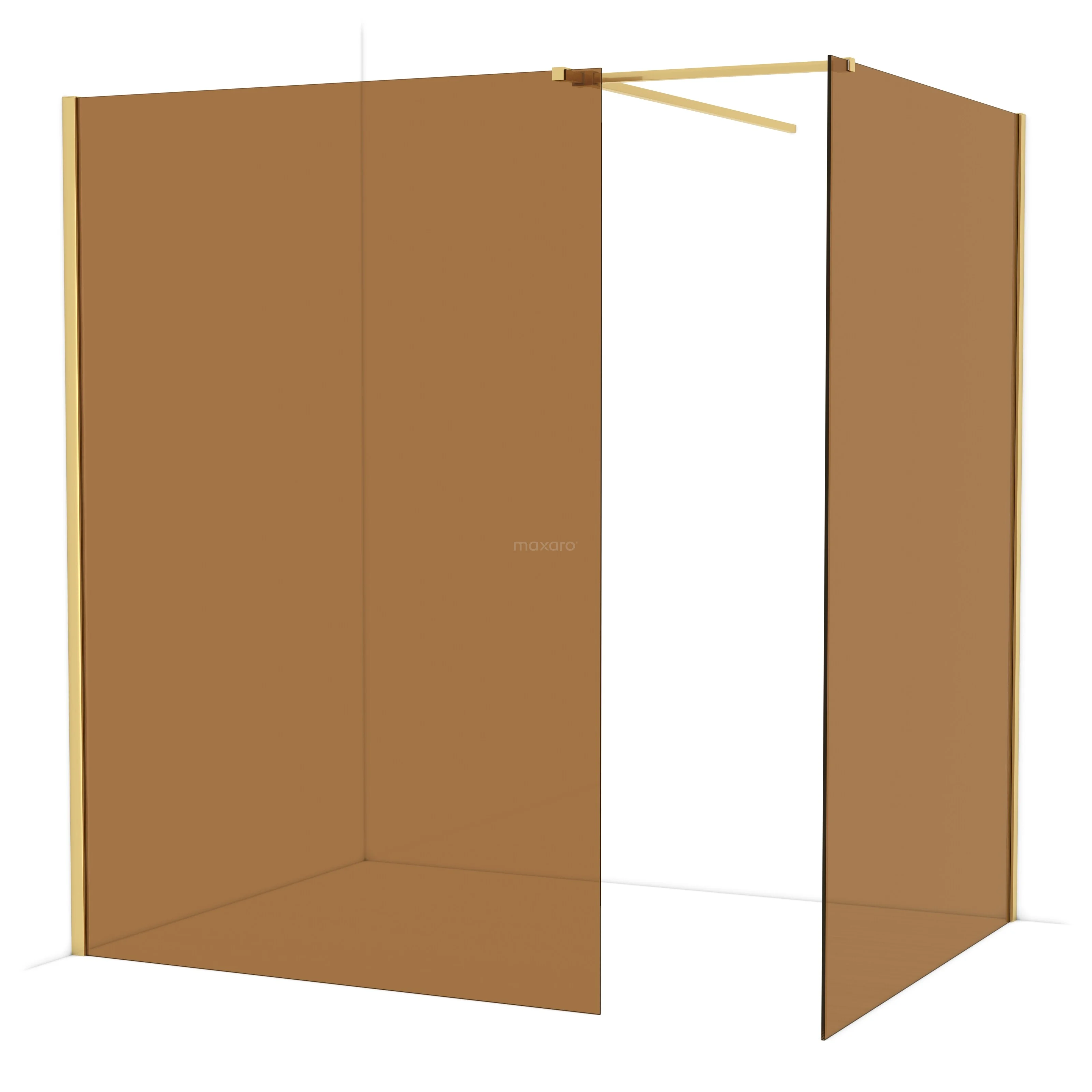 Diamond Inloopdouche | 140x140 cm Goud Bronsglas 2 vaste wanden