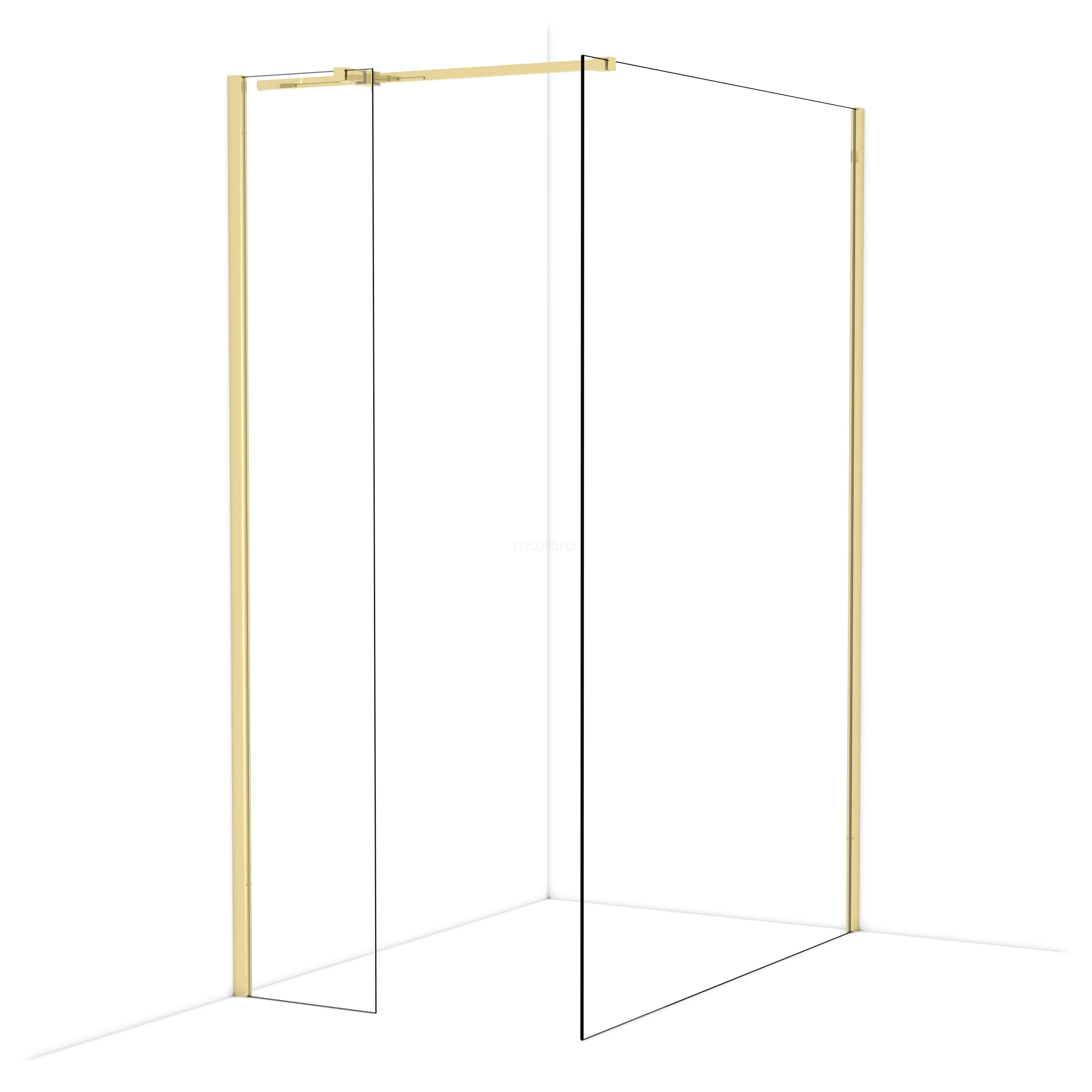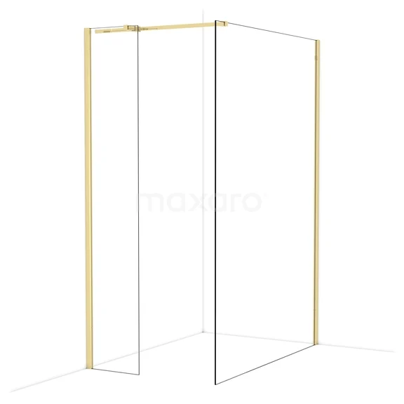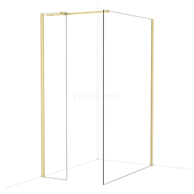 Diamond Inloopdouche | 140x40 cm Glanzend lichtgoud Helder glas 2 vaste wanden