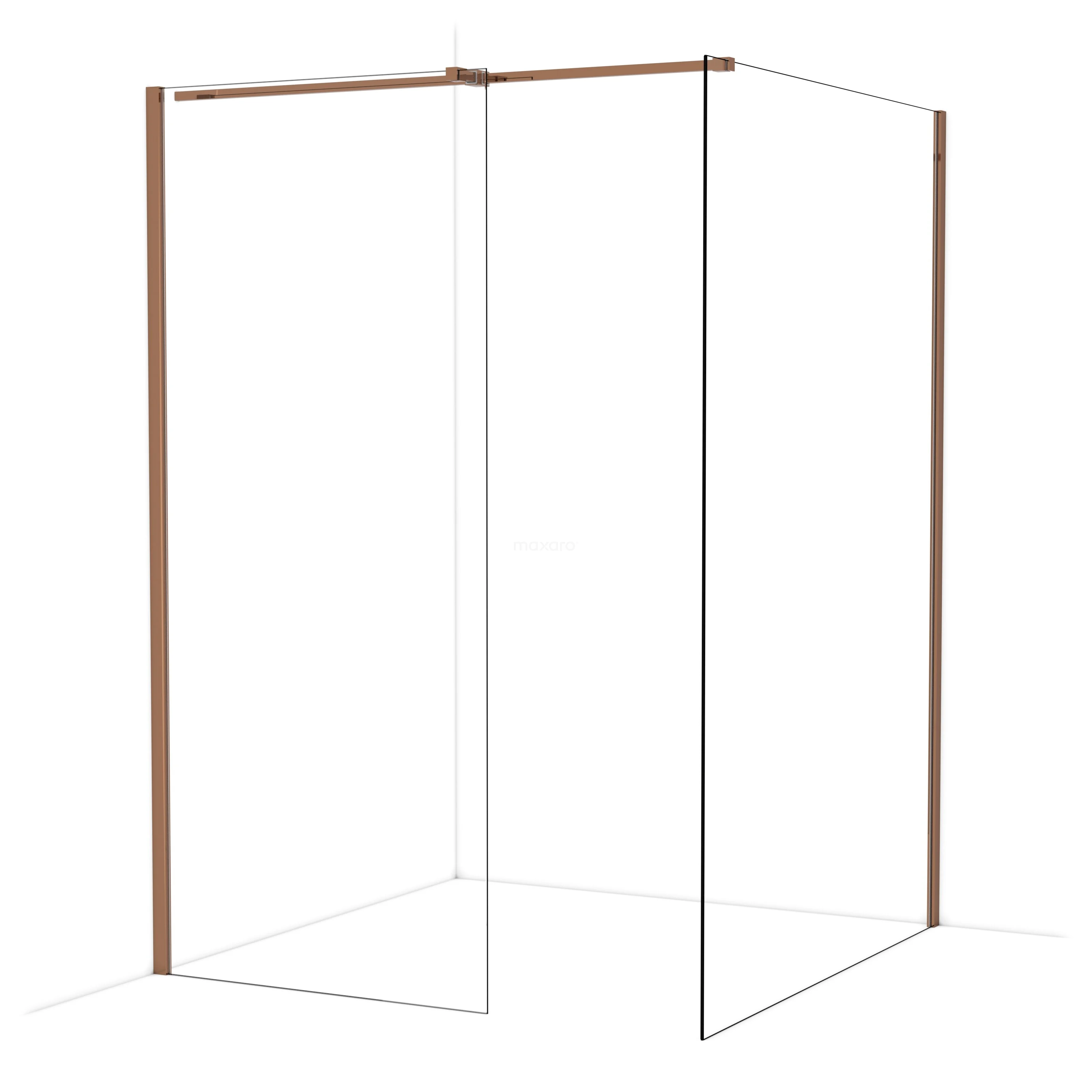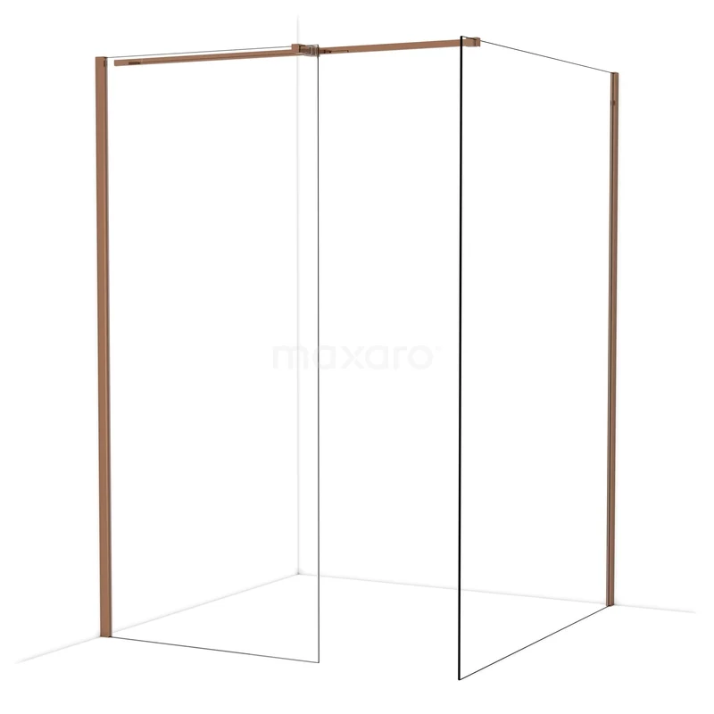 Diamond Inloopdouche | 140x90 cm Glanzend koper Helder glas 2 vaste wanden