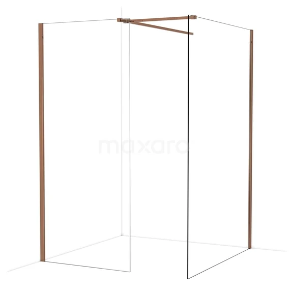 Diamond Inloopdouche | 140x90 cm Glanzend koper Helder glas 2 vaste wanden