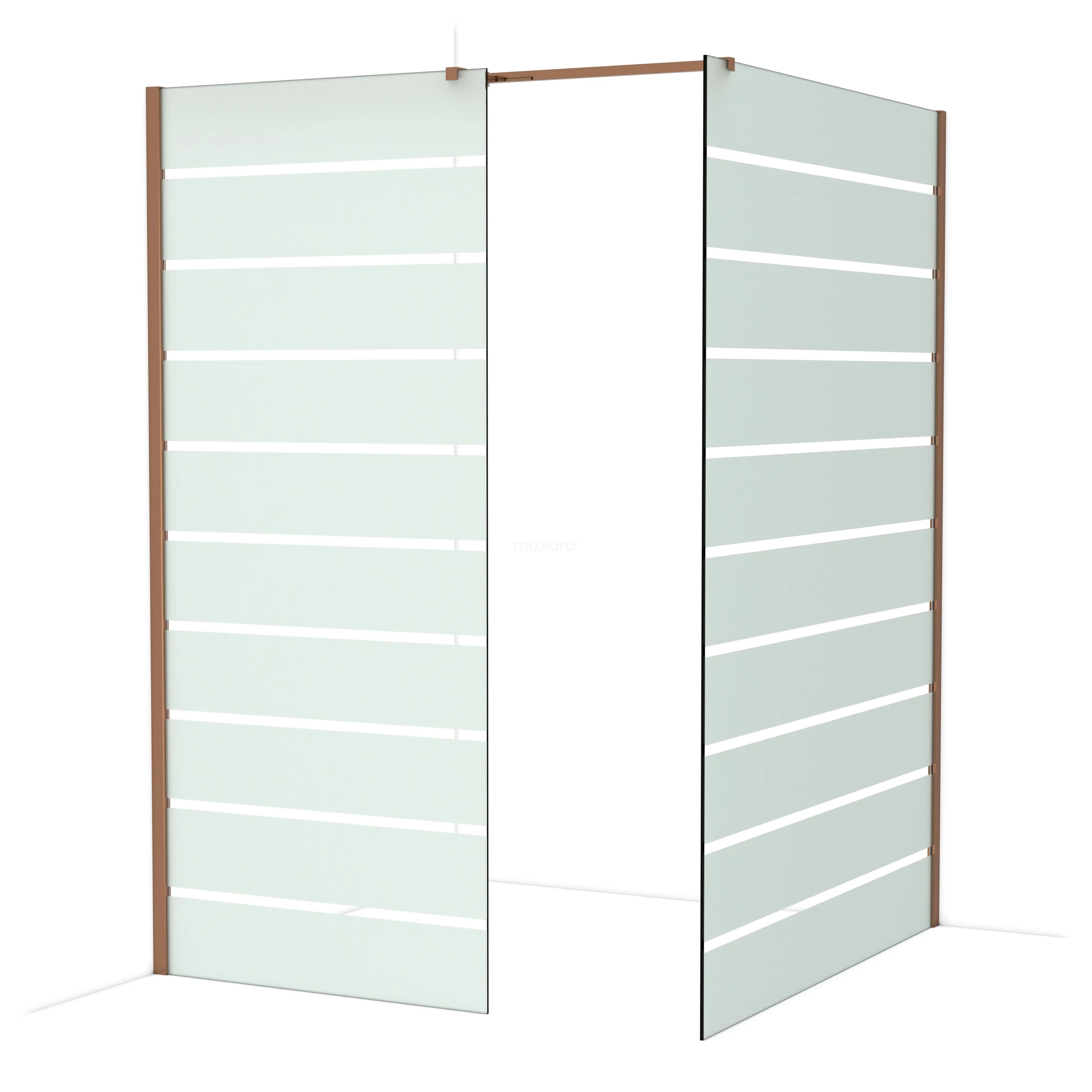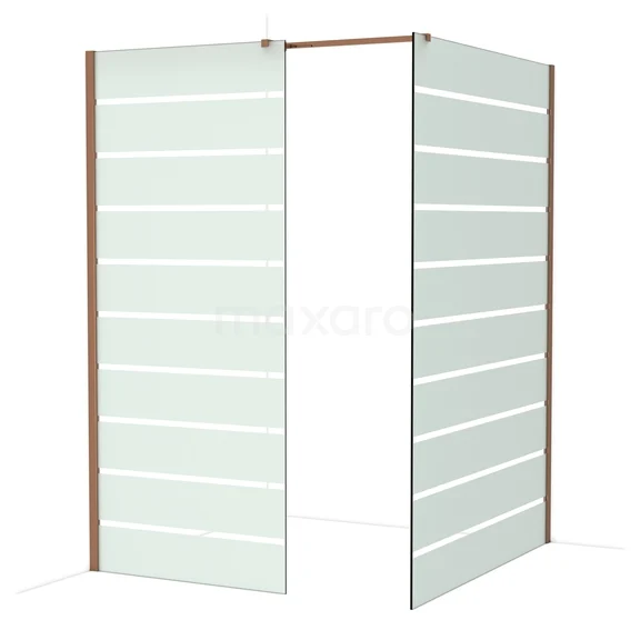 Diamond Inloopdouche | 140x90 cm Glanzend koper Helder met matte strepen 2 vaste wanden
