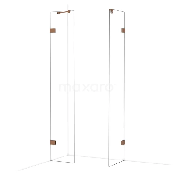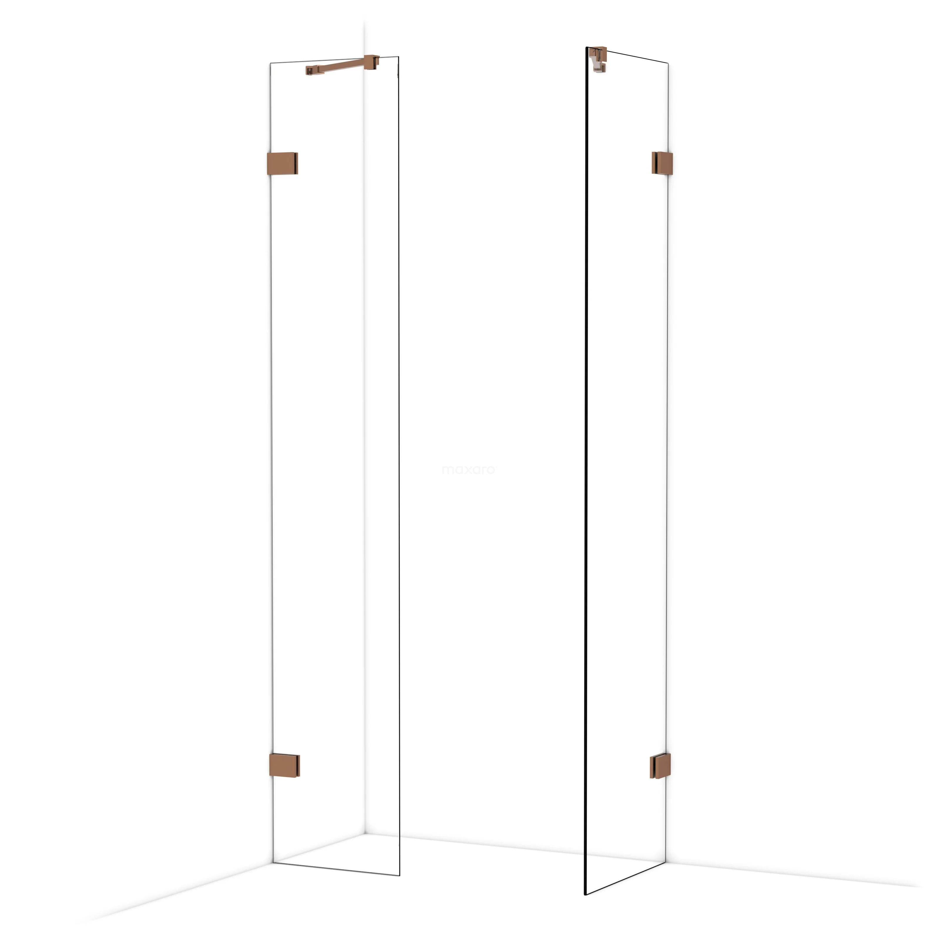 Diamond Inloopdouche | 50x40 cm Glanzend koper Helder glas 2 vaste wanden