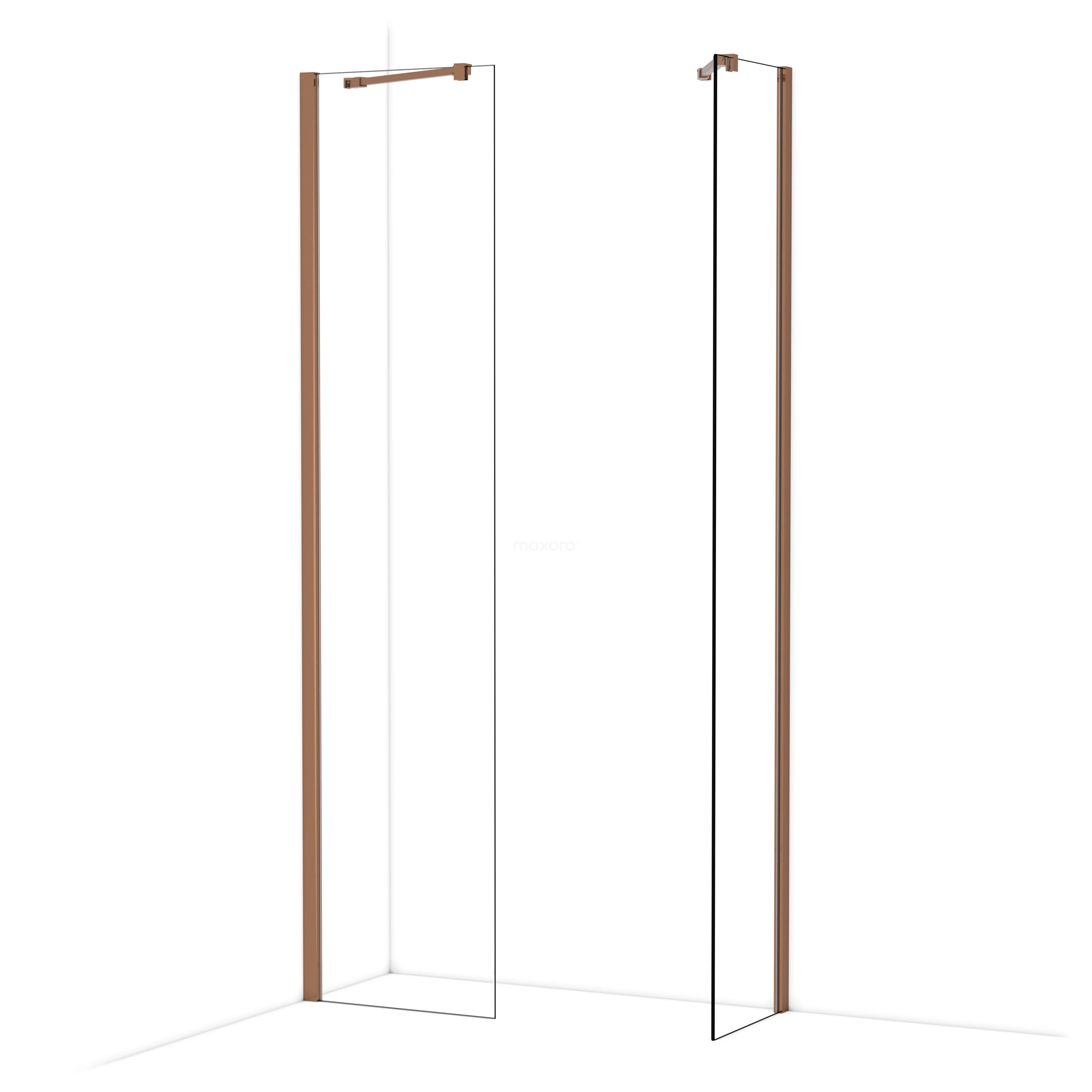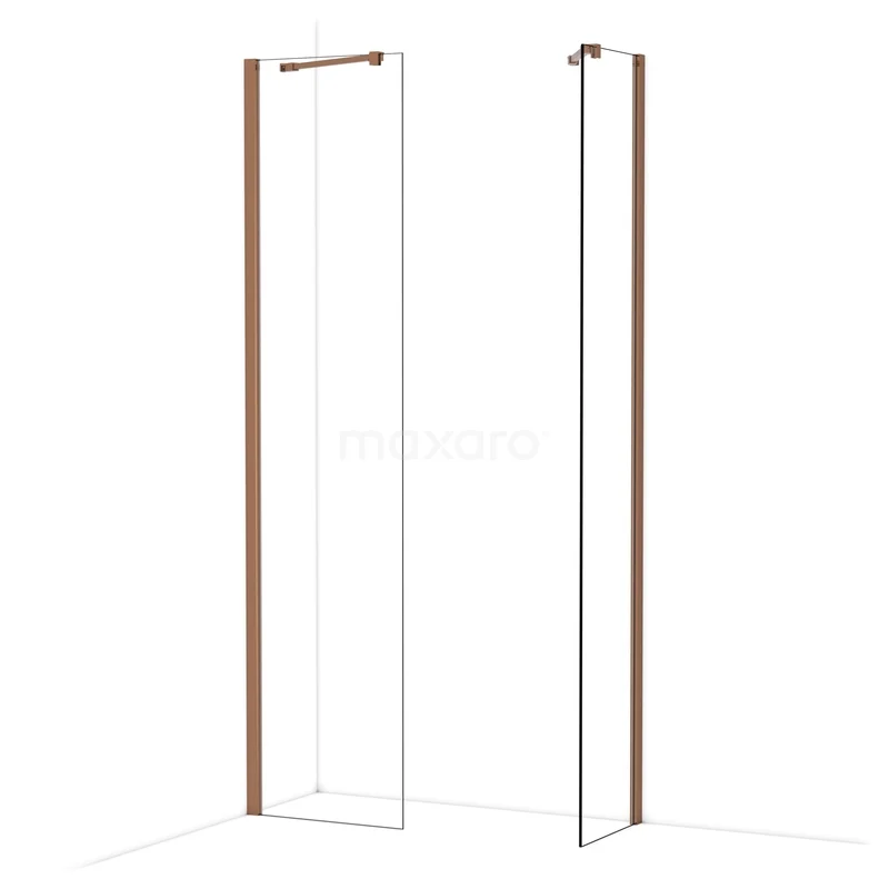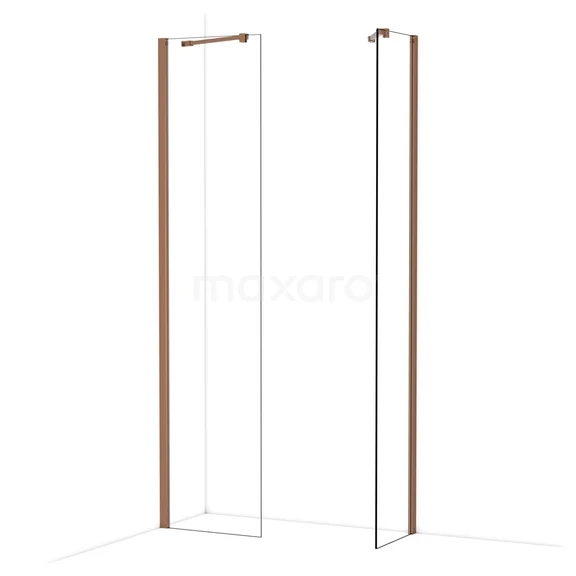 Diamond Inloopdouche | 50x40 cm Glanzend koper Helder glas 2 vaste wanden